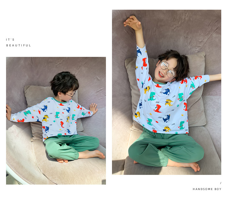 左西 Летняя одежда, демисезонная детская тонкая пижама для мальчиков, подходит для подростков, коллекция 2021, в западном стиле