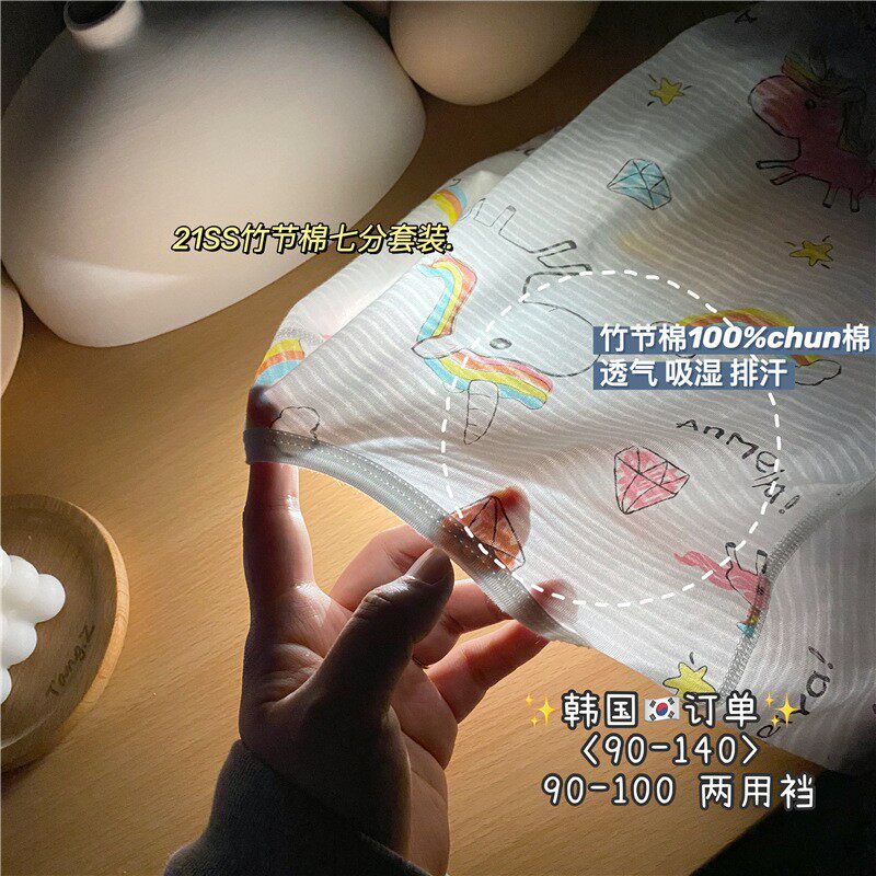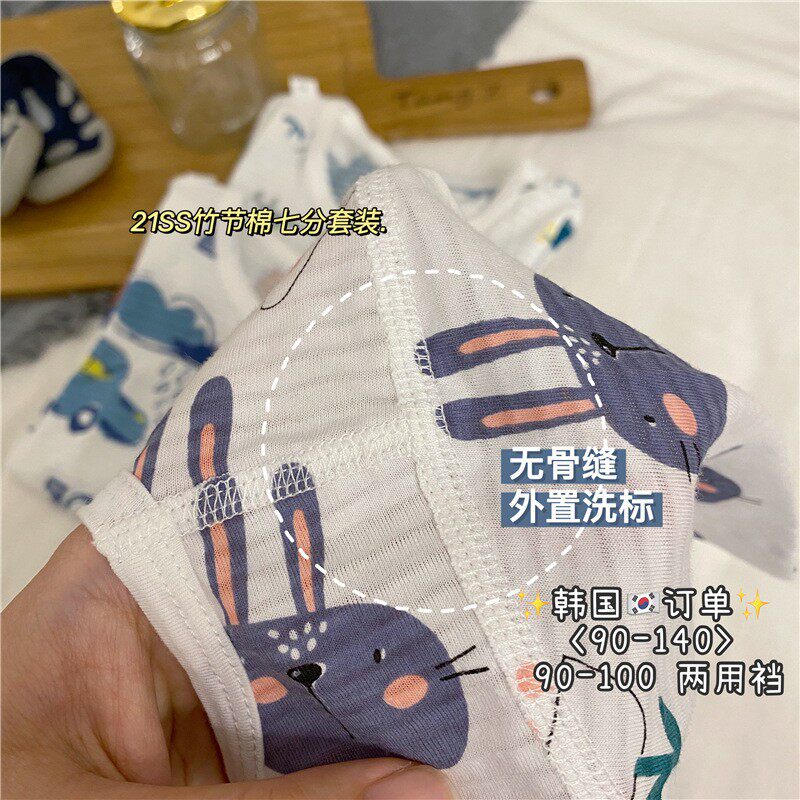 Летняя одежда, летняя тонкая детская бамбуковая пижама, детская одежда