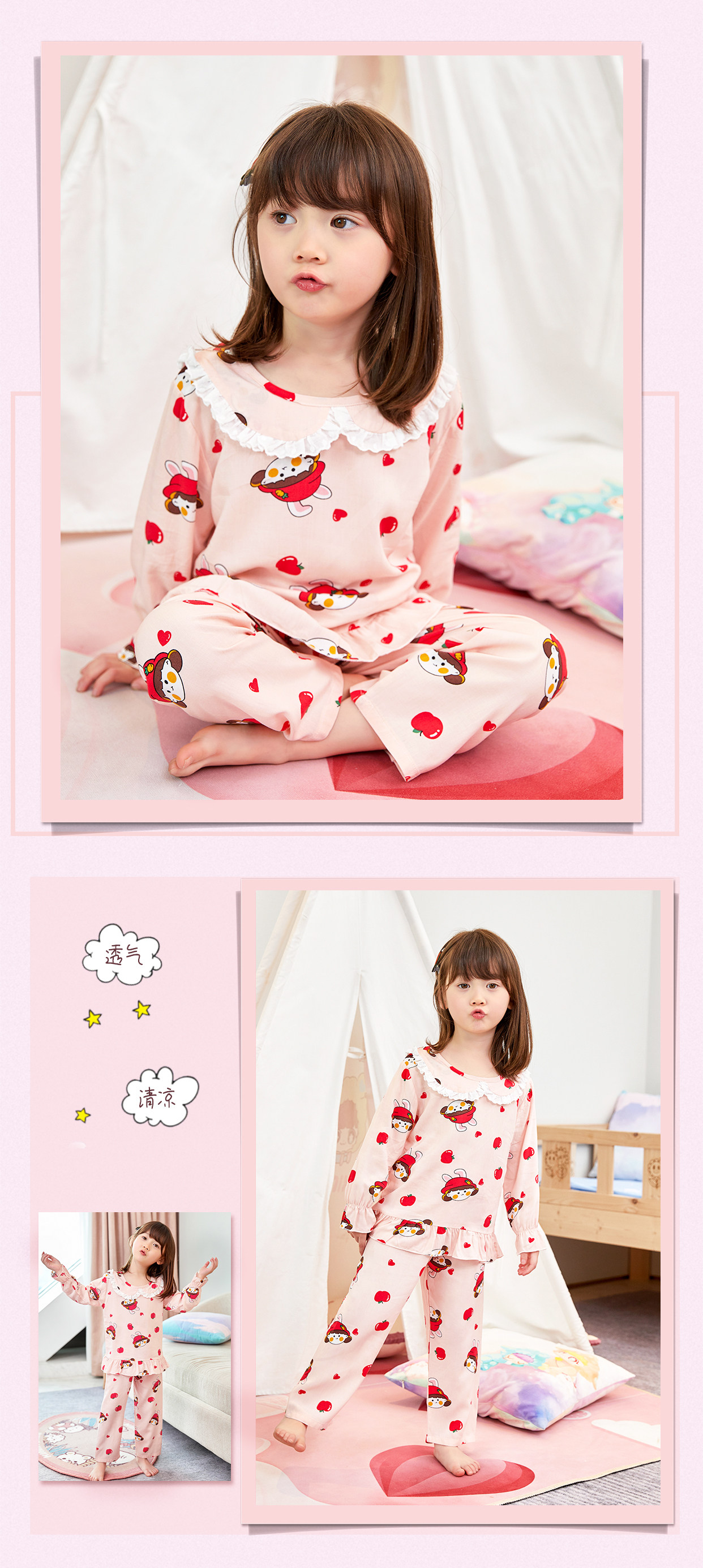 Детская летняя тонкая пижама, лонгслив, нарукавники, комплект, подходит для подростков