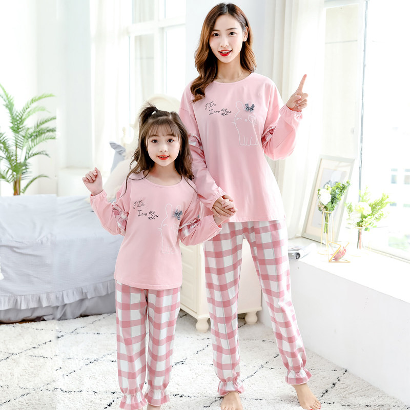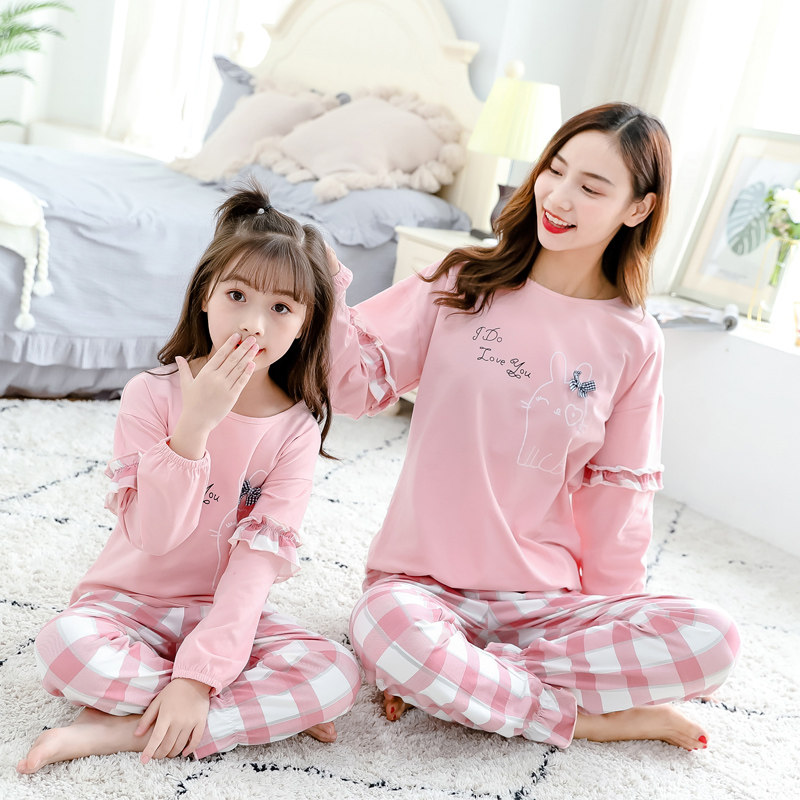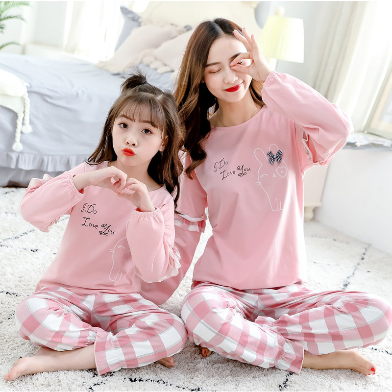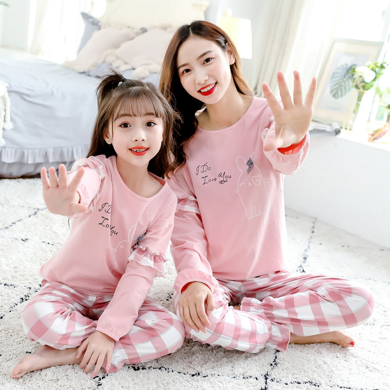 Детская пижама, комплект, тонкий хлопковый летний осенний лонгслив, семейный стиль
