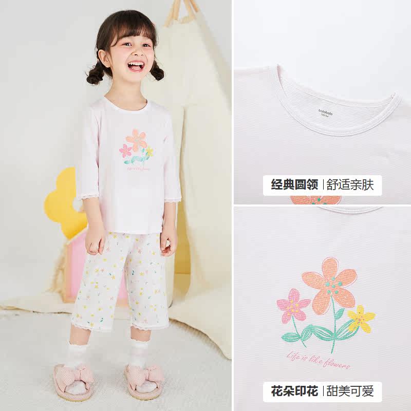 巴拉巴拉 Детская пижама подходит для мужчин и женщин, хлопковый детский комплект, летняя одежда, детская одежда