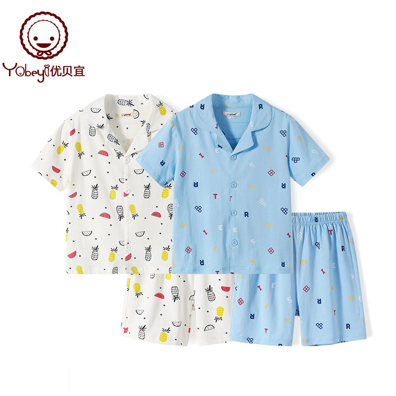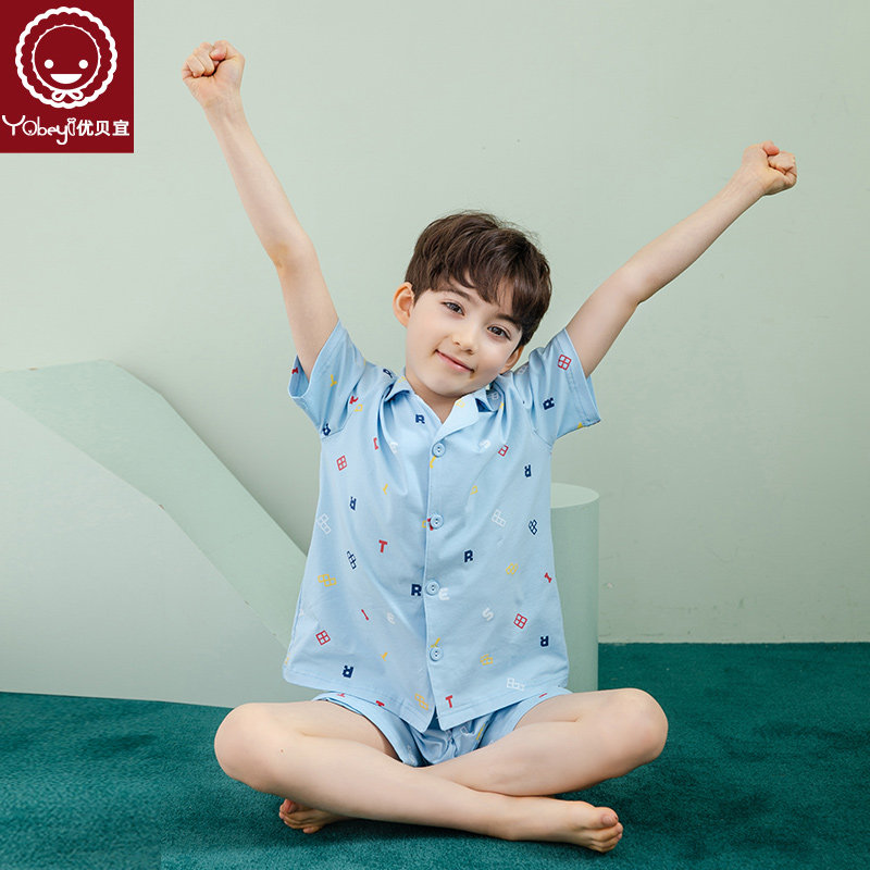 Детская пижама для мальчиков, тонкий кардиган, комплект, короткий рукав, детская одежда