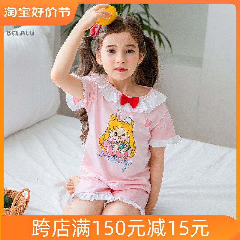 Детская хлопковая розовая пижама с бантиком, короткий рукав, в корейском стиле
