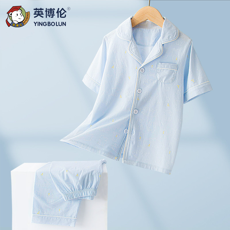 英博伦 Летняя тонкая детская пижама для мальчиков, хлопковые нарукавники, комплект, форма, кардиган, подходит для подростков
