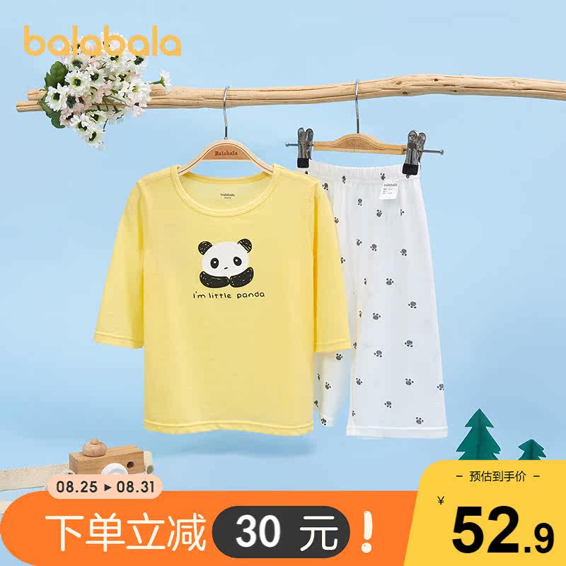 巴拉巴拉 Детская летняя пижама, детский хлопковый модный комплект подходит для мужчин и женщин