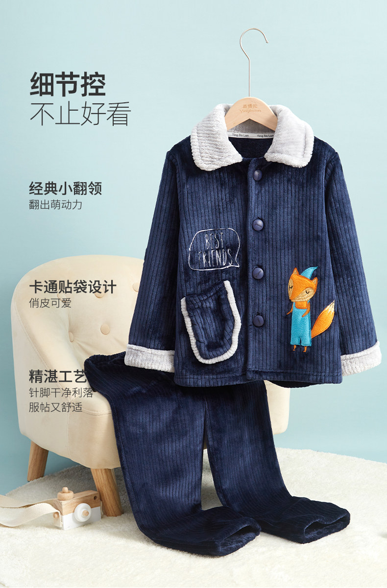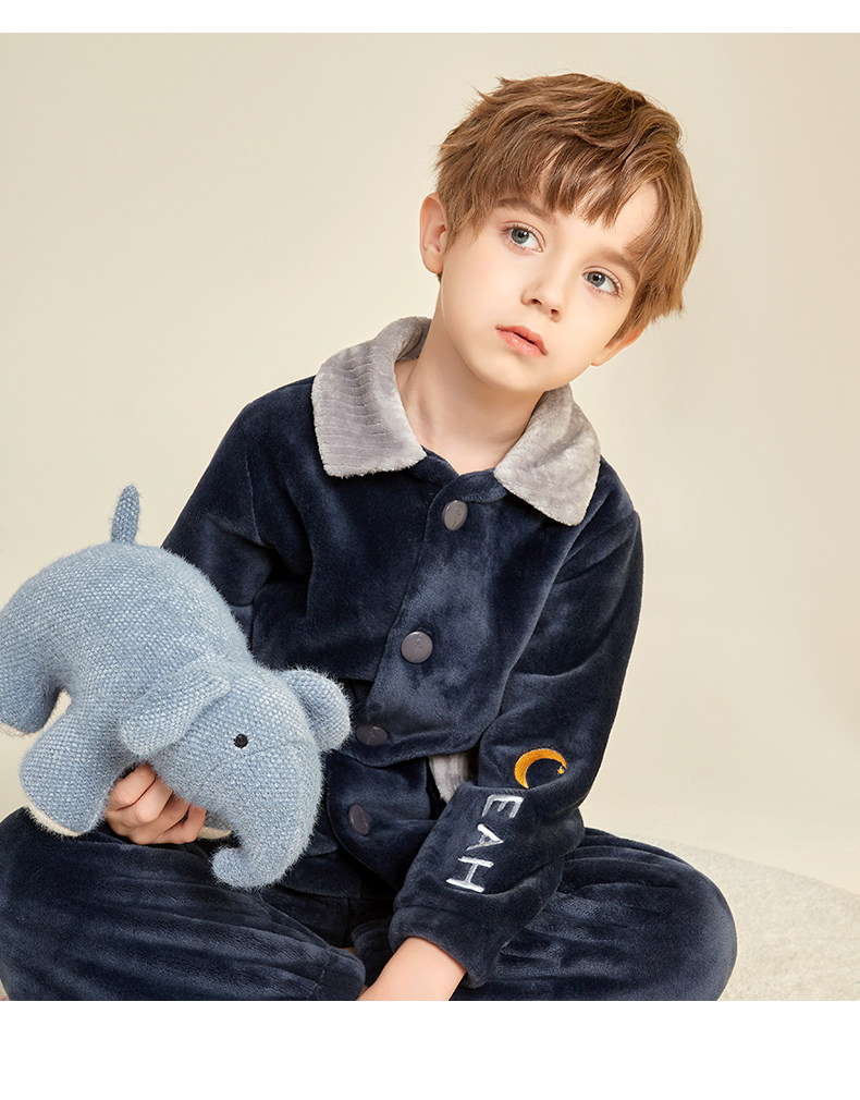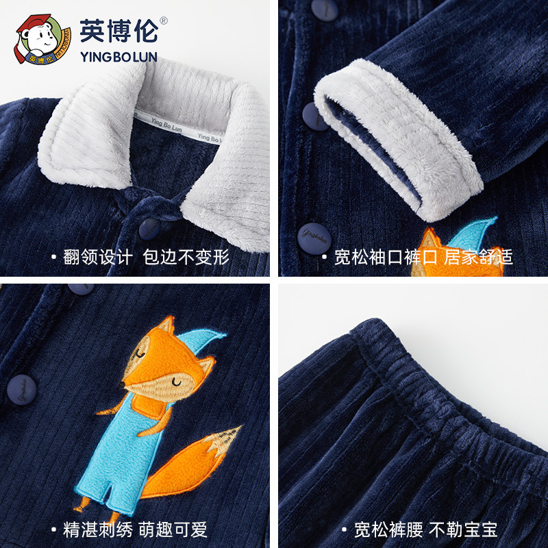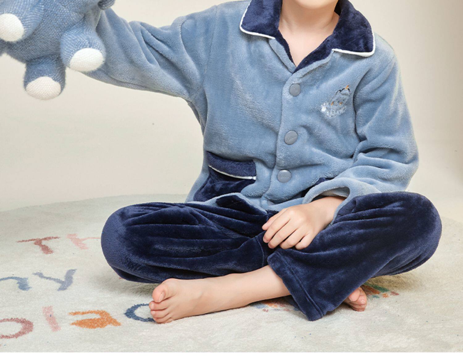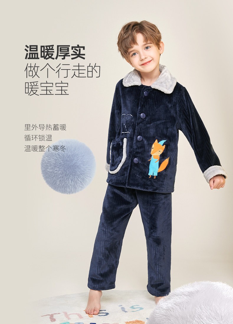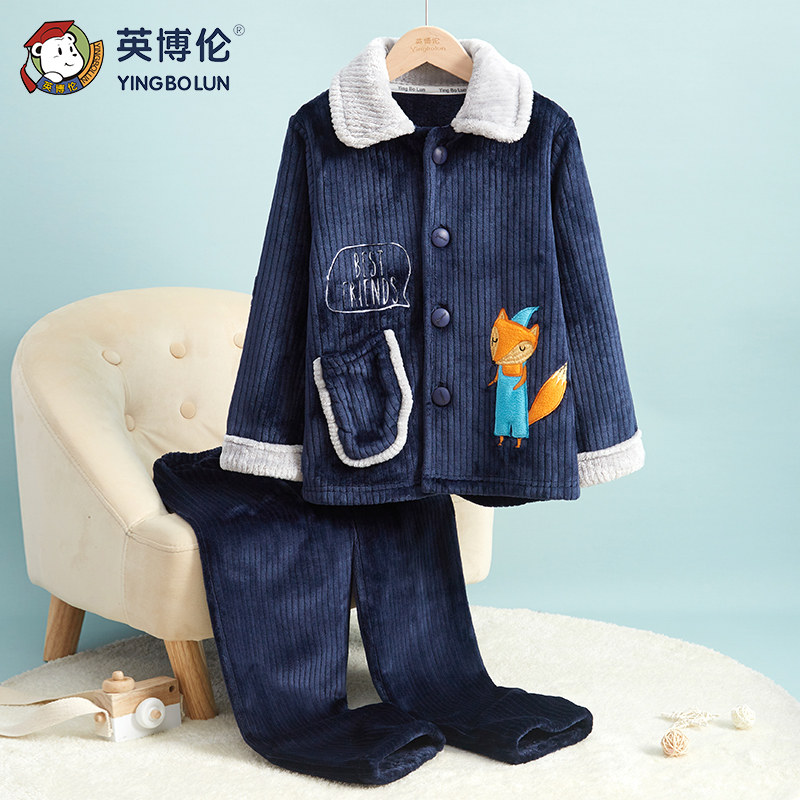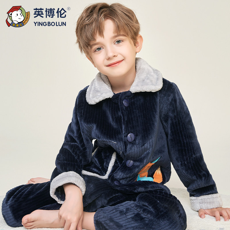 Демисезонная удерживающая тепло пижама для мальчиков, фланелевый детский коралловый бархатный комплект, увеличенная толщина, подходит для подростков
