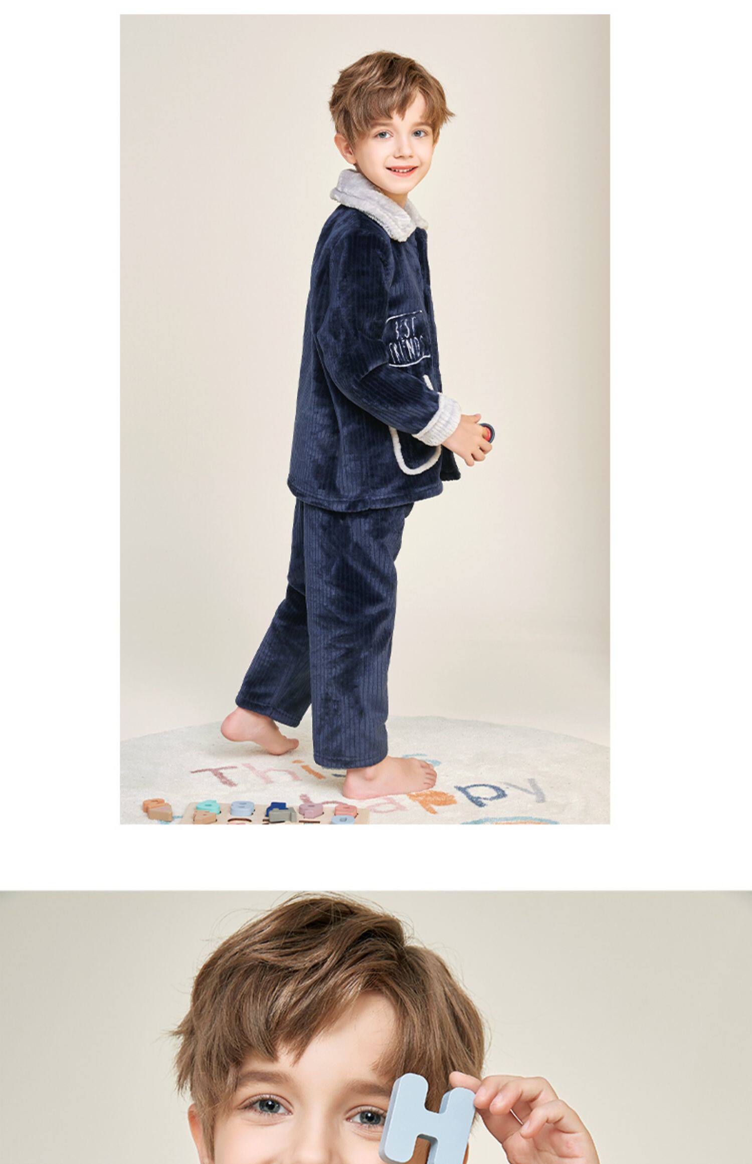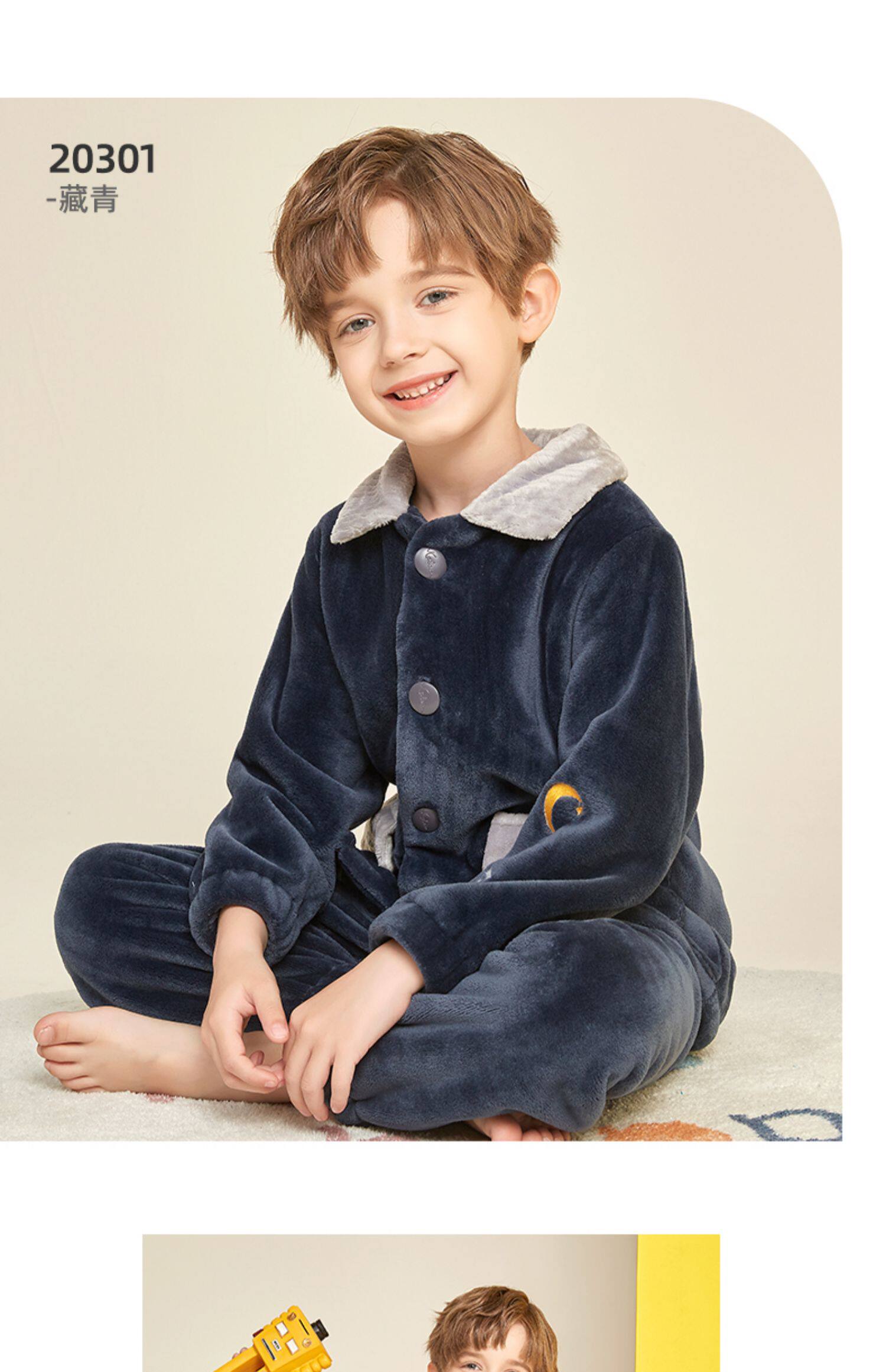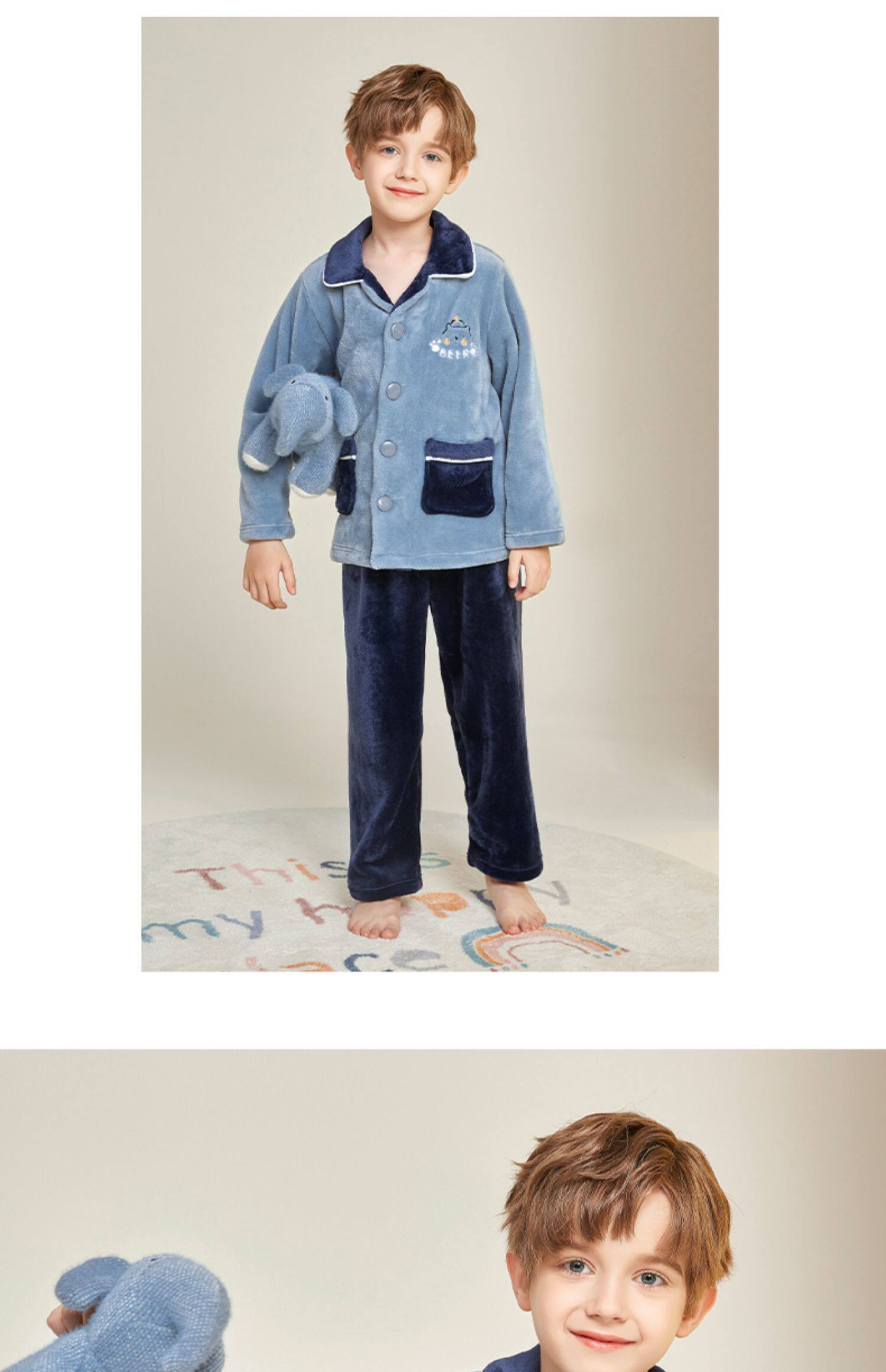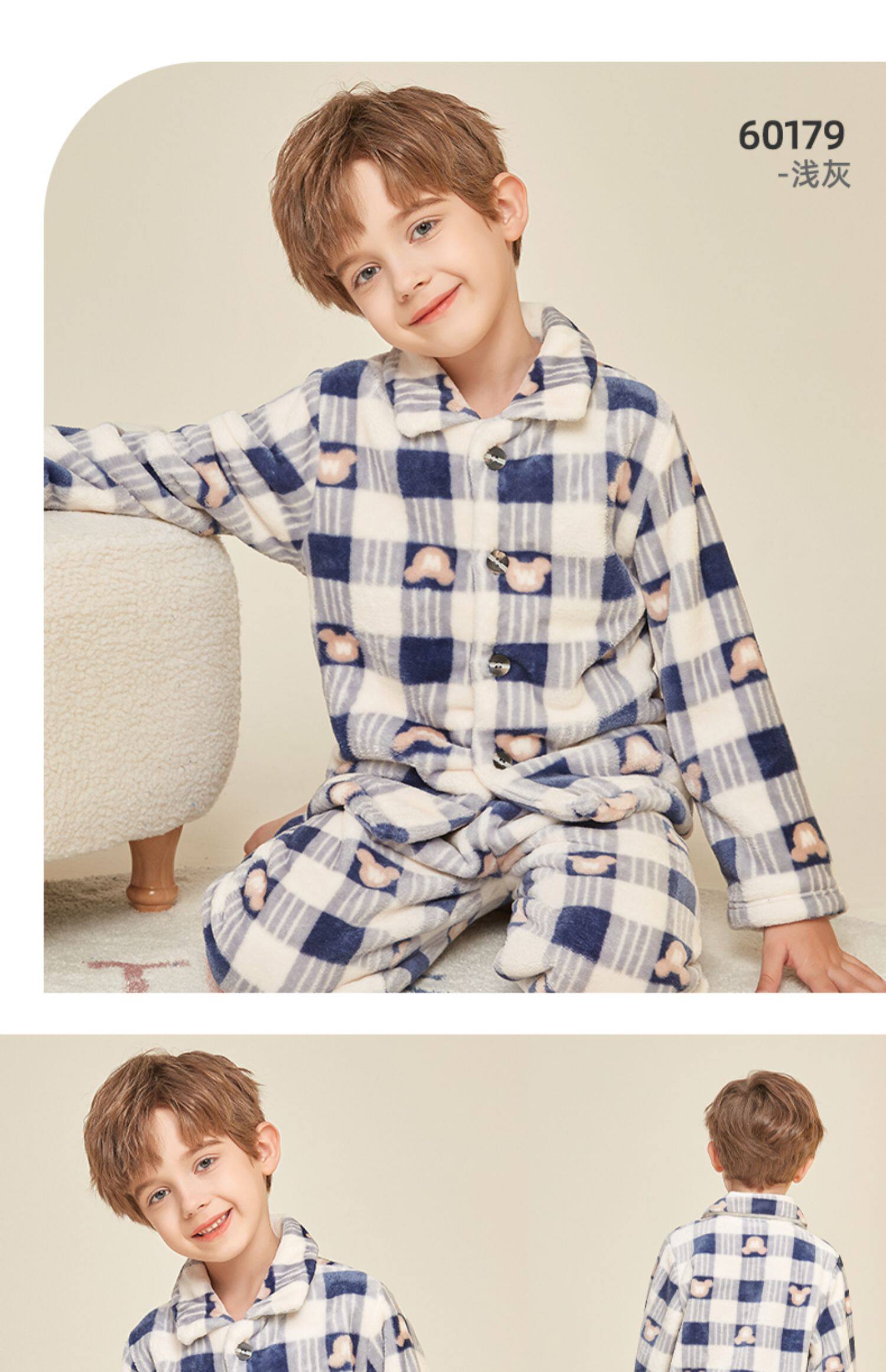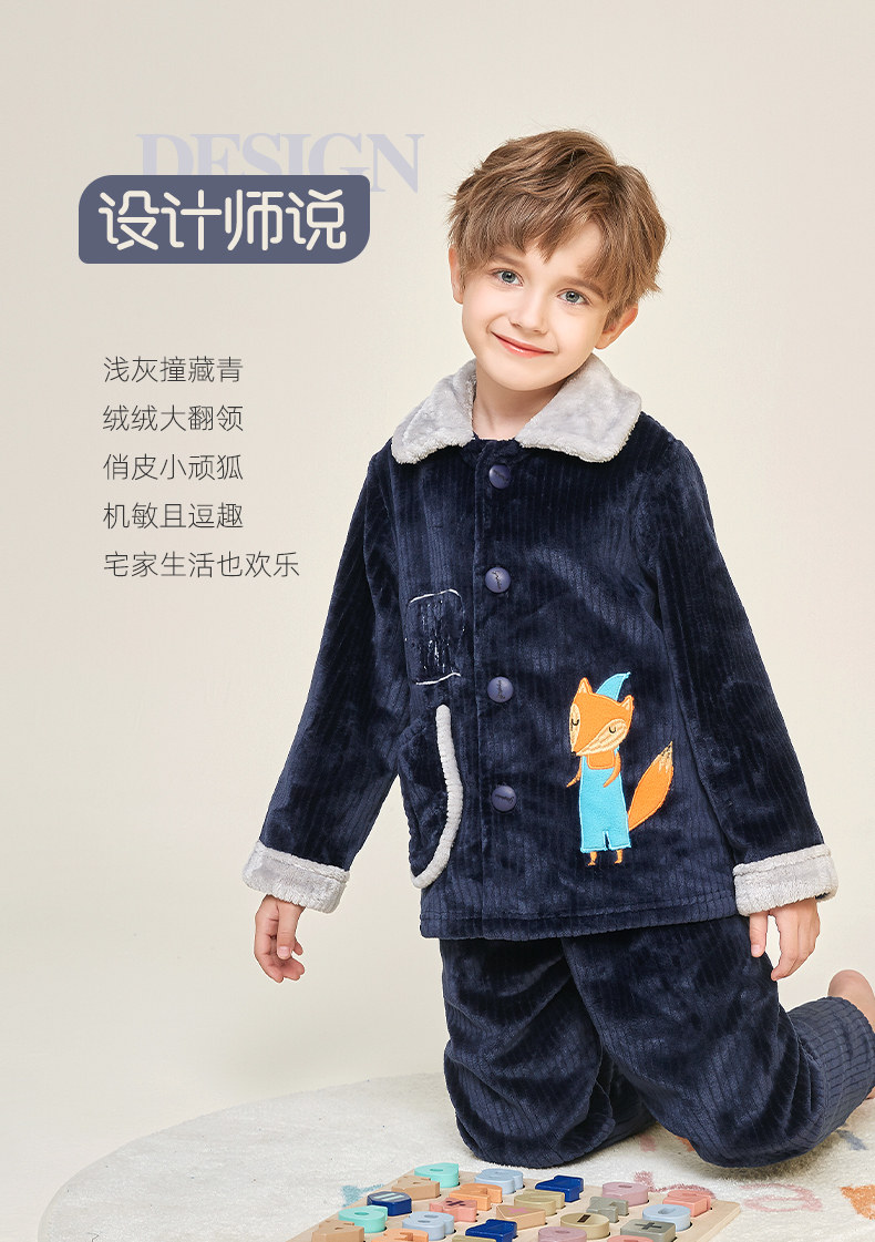 Демисезонная удерживающая тепло пижама для мальчиков, фланелевый детский коралловый бархатный комплект, увеличенная толщина, подходит для подростков