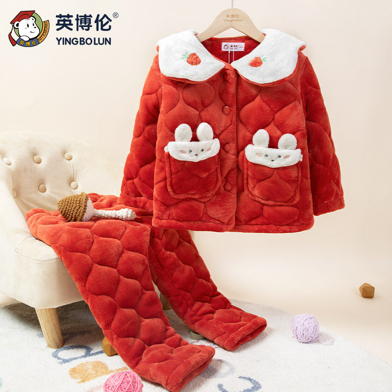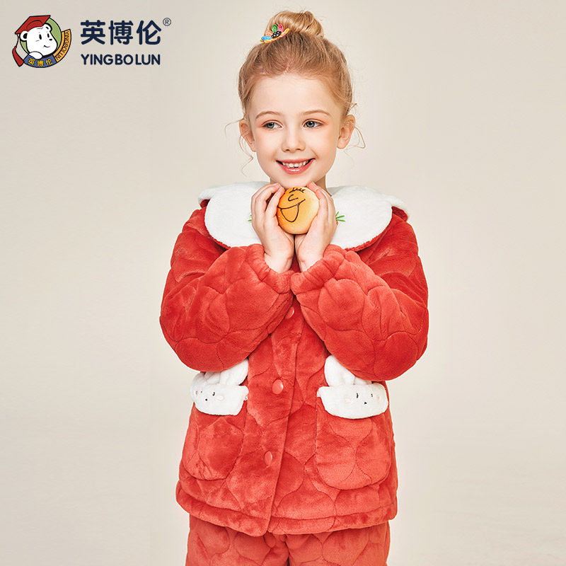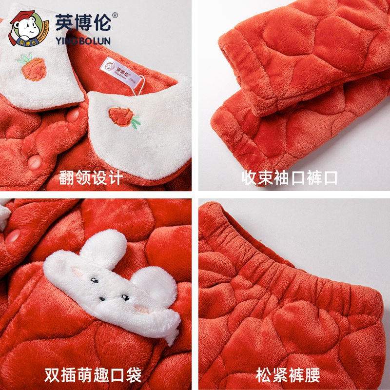 Зимняя детская стеганая утепленная пижама, фланелевый комплект