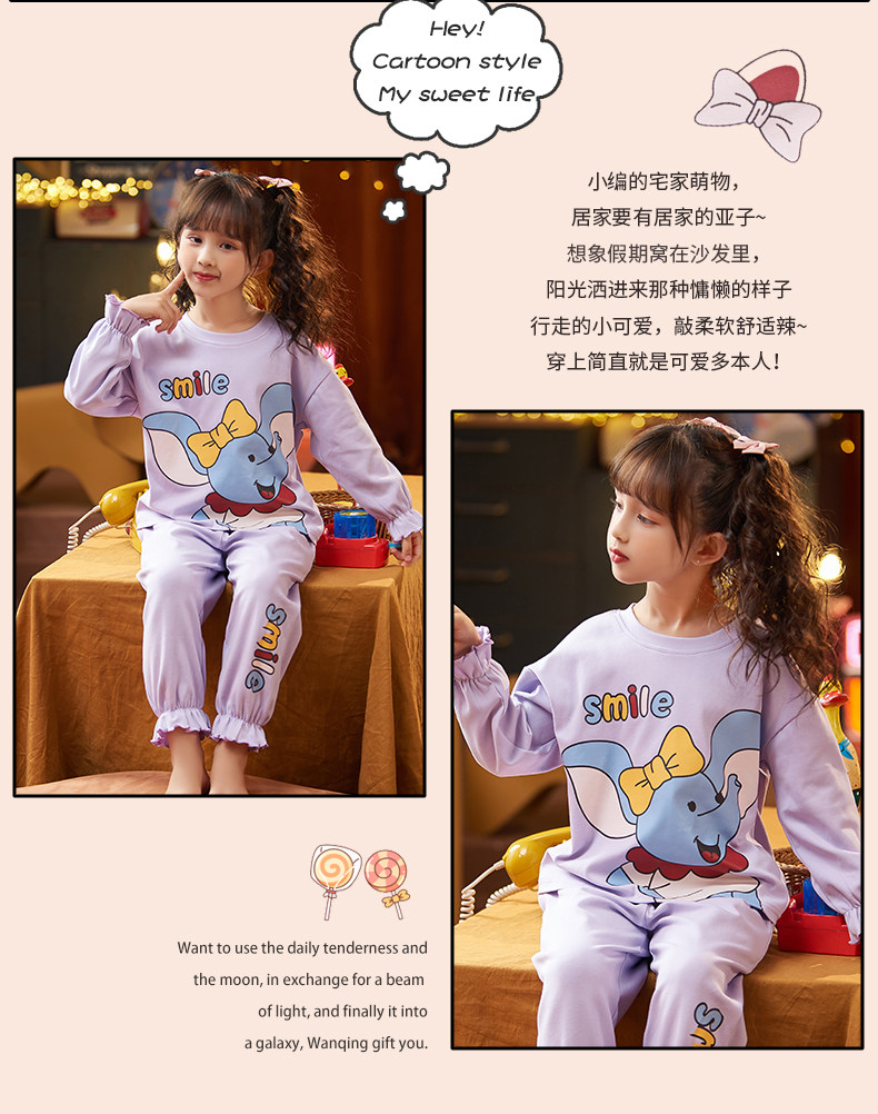 Пижама, хлопковое милое термобелье, детский тонкий осенний лонгслив, комплект, осенняя, подходит для подростков