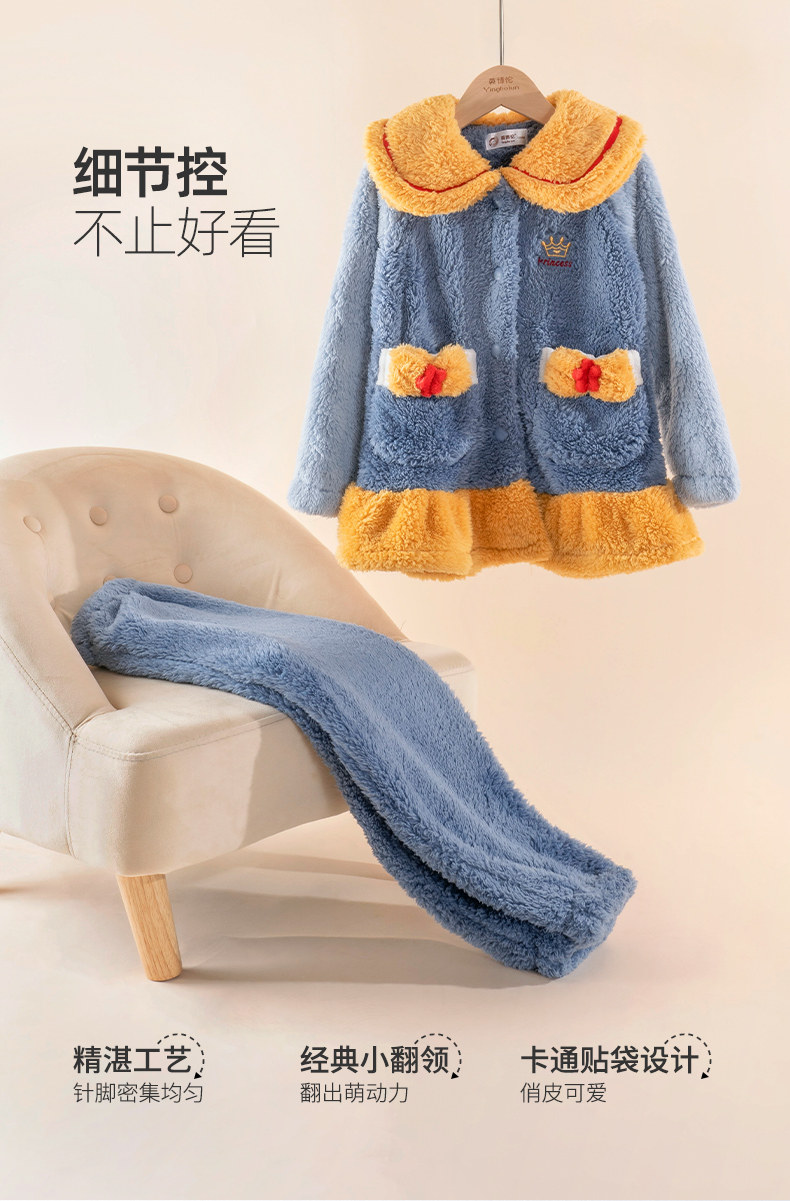 Удерживающая тепло пижама, фланелевый стеганый детский комплект для принцессы, подходит для подростков