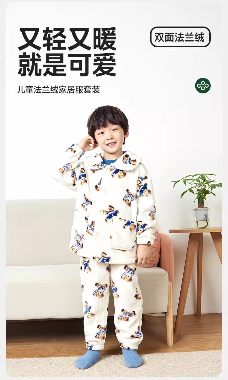 Детская зимняя фланелевая осенняя утепленная коралловая бархатная пижама для мальчиков