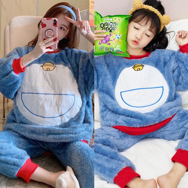 Детская зимняя коралловая бархатная фланелевая пижама, увеличенная толщина, подходит для подростков, семейный стиль