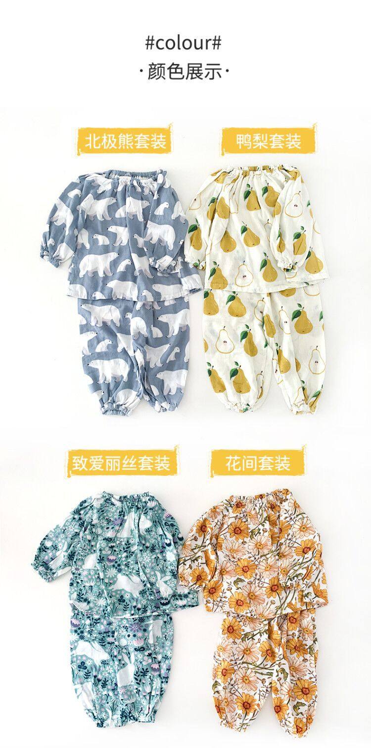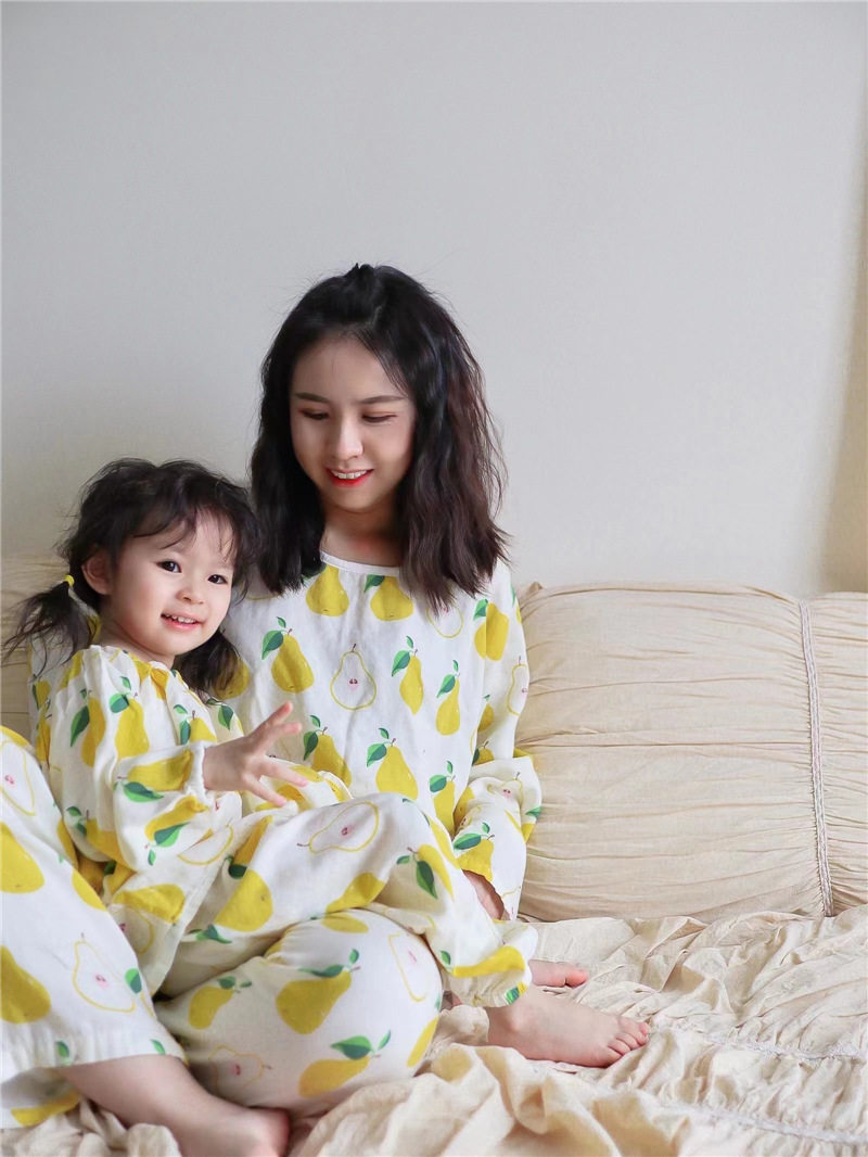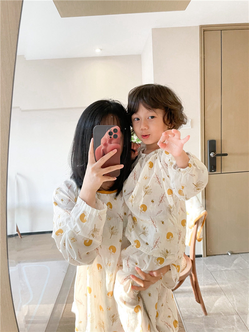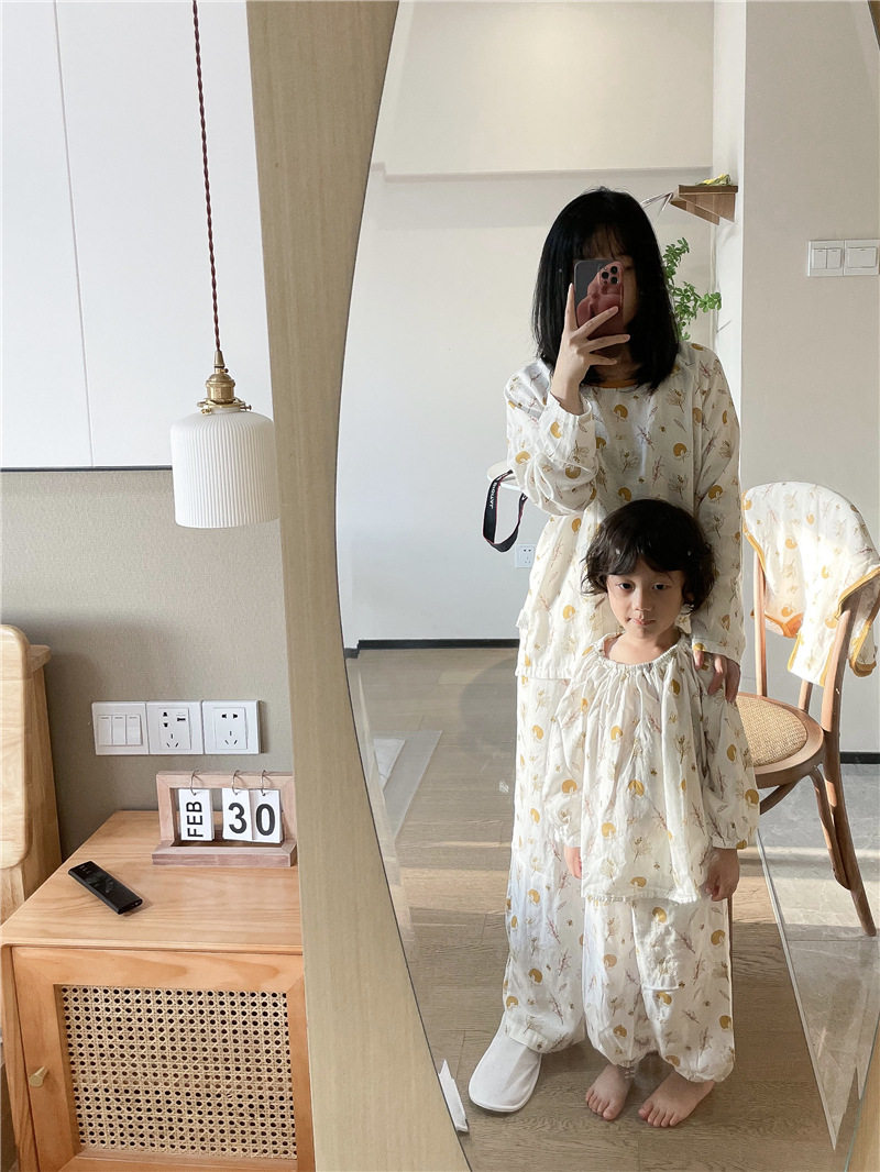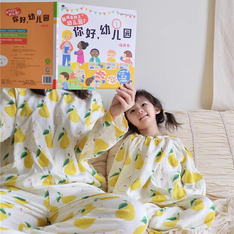 Детский марлевый лонгслив, пижама, легкий и тонкий дышащий комплект, семейный стиль