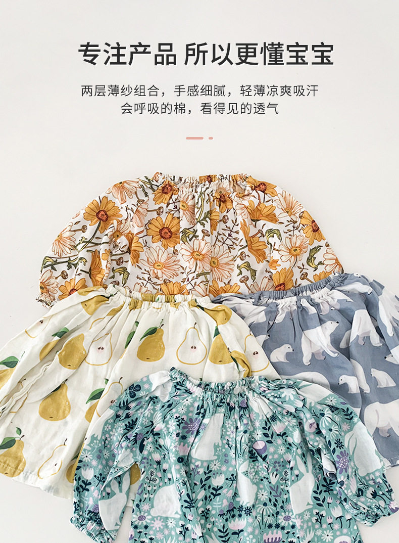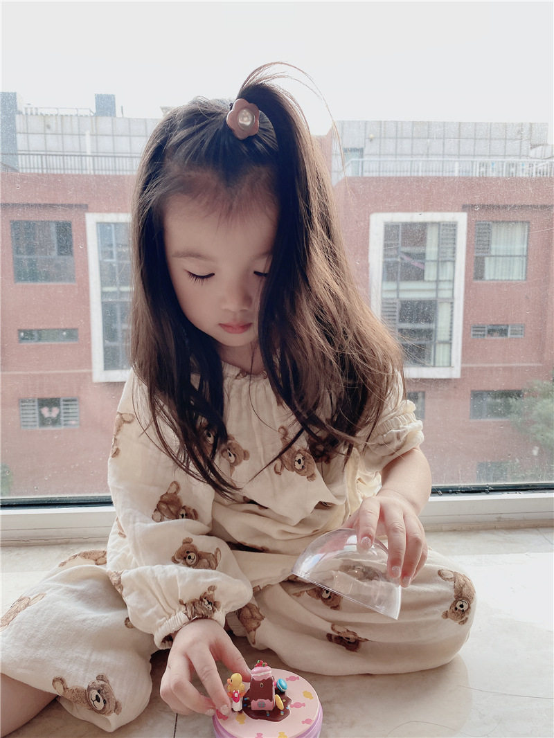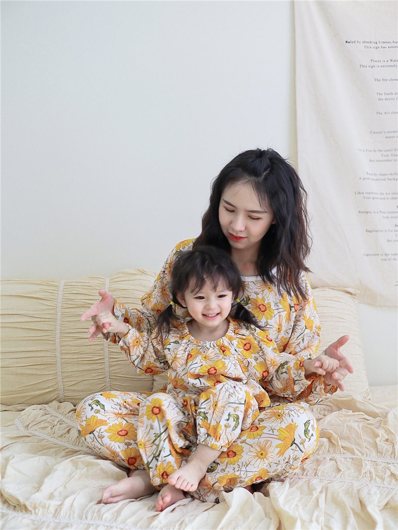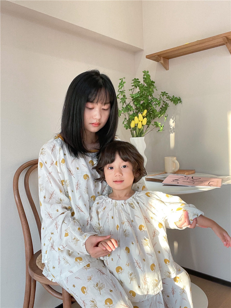 Детский марлевый лонгслив, пижама, легкий и тонкий дышащий комплект, семейный стиль