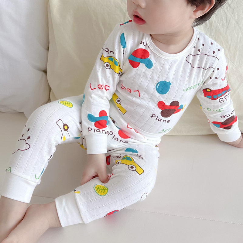Осеннее детское нижнее белье, комплект, детский бандаж пупочный, термобелье для мальчиков, хлопковая пижама, высокая талия
