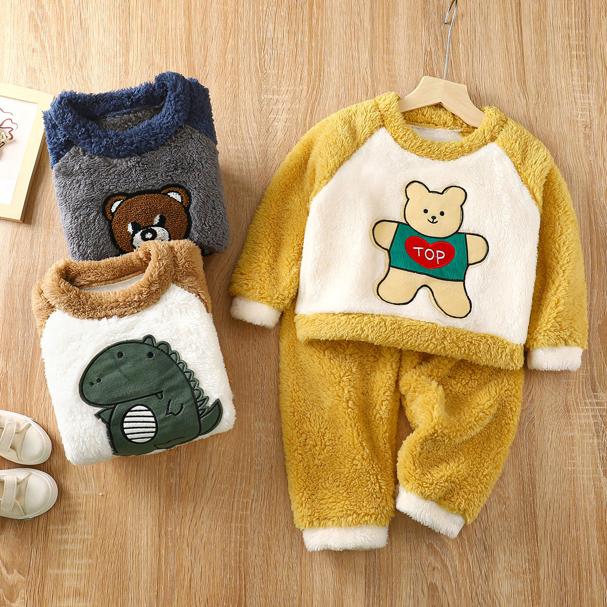 Детская фланелевая пижама, демисезонный коралловый бархатный флисовый комплект подходит для мужчин и женщин, увеличенная толщина