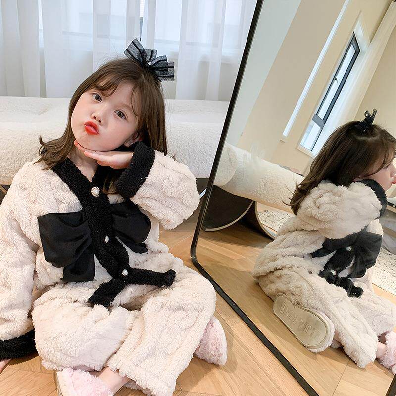 Коралловая бархатная демисезонная пижама, фланелевый милый детский комплект, с медвежатами, семейный стиль