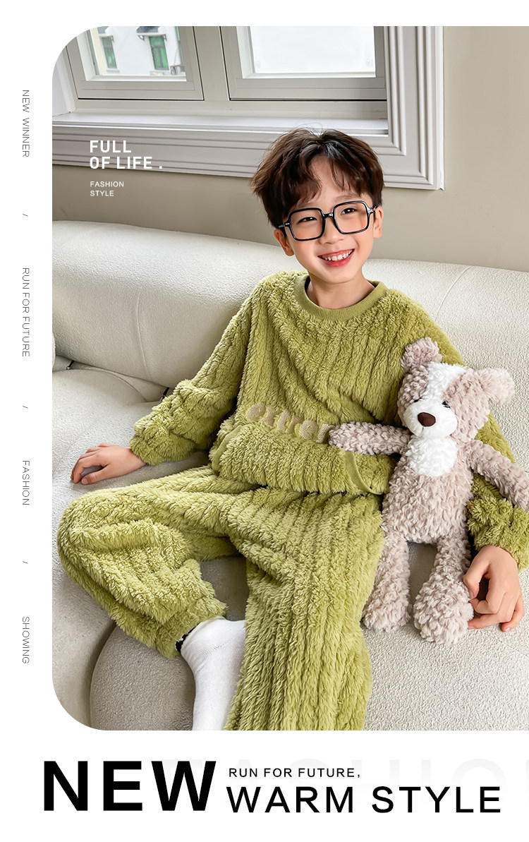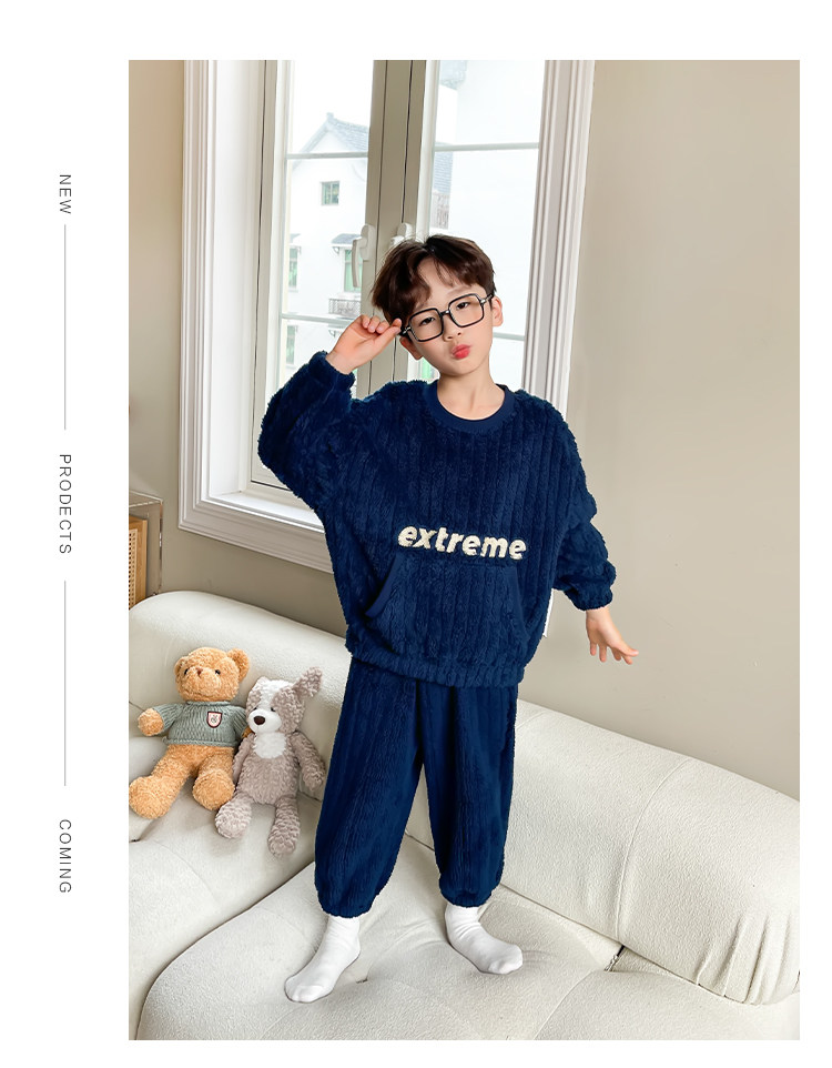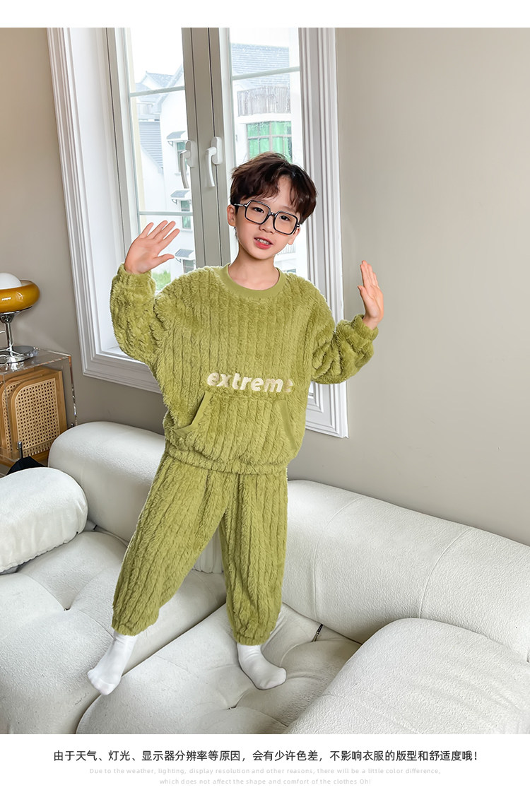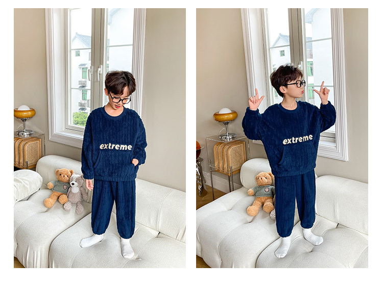 左西 Детская коралловая пижама для мальчиков, бархатный демисезонный комплект, утепленный пуховик, детская одежда, коллекция 2023