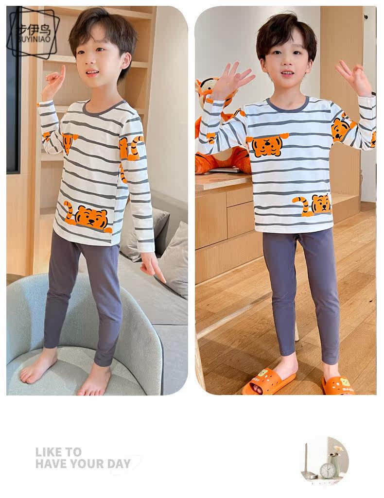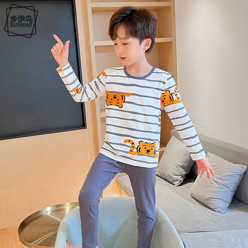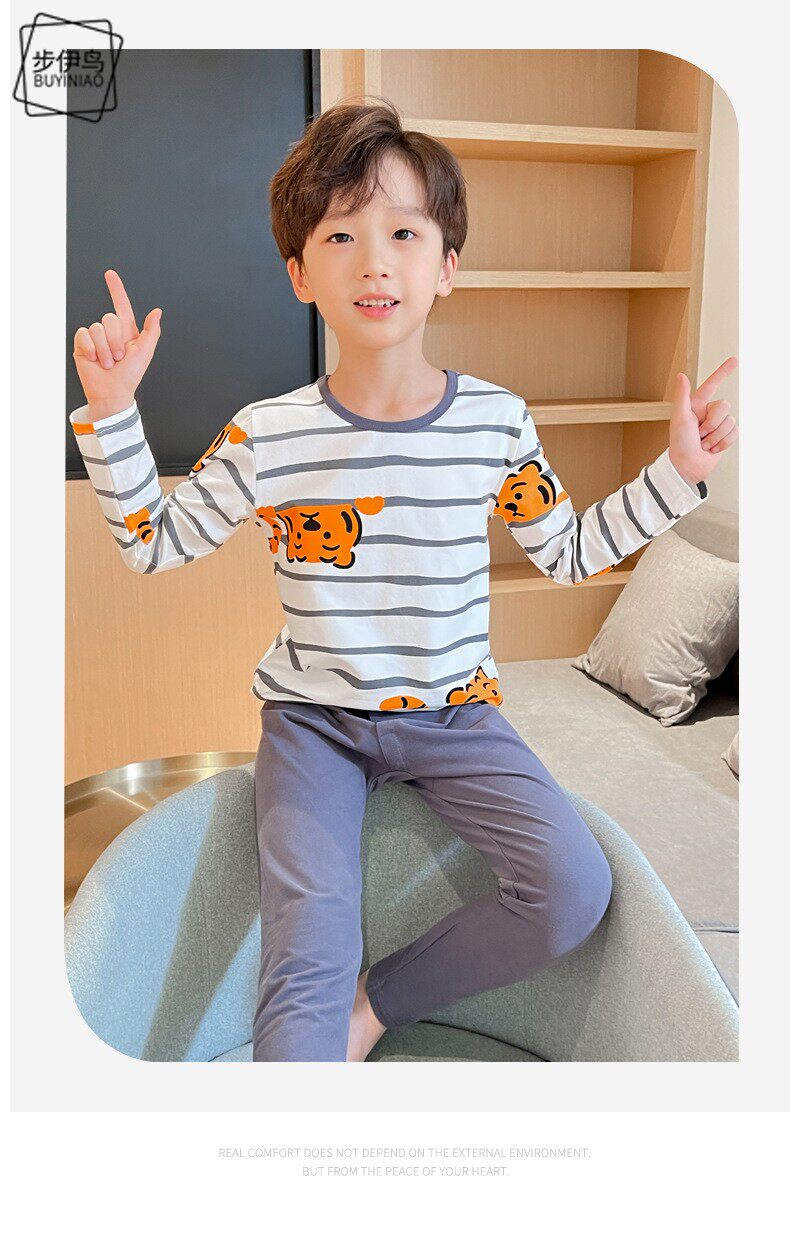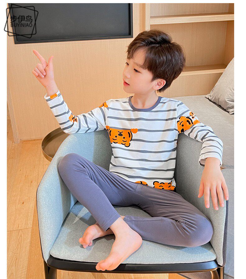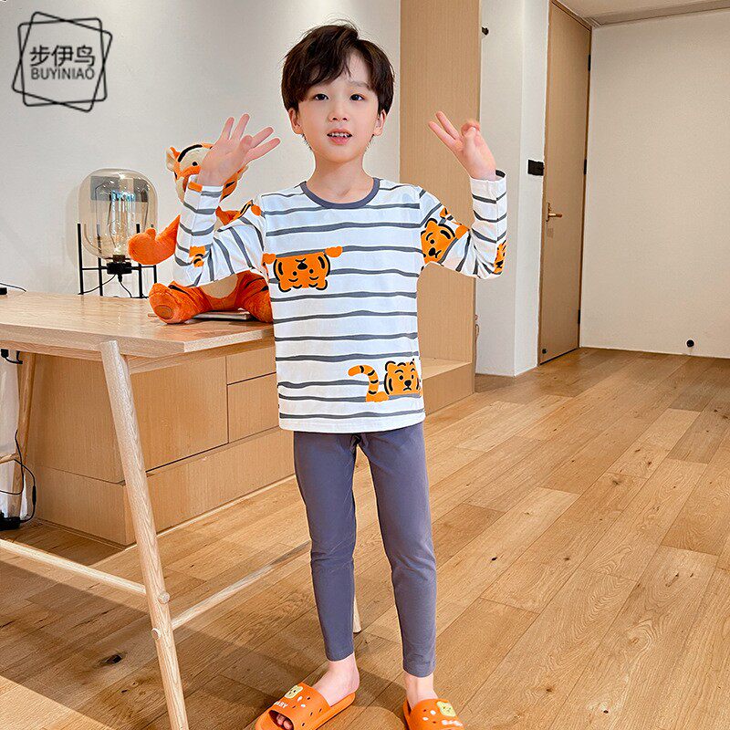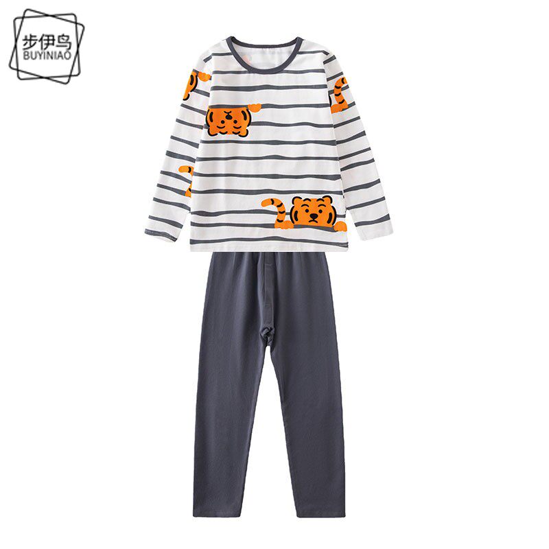 Демисезонное нижнее белье для мальчиков с круглым воротником, детский комплект, пижама, принт