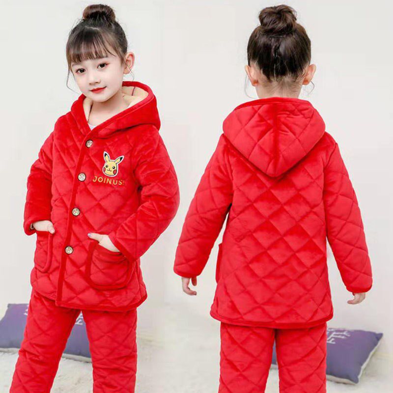 Зимняя детская стеганая фланелевая пижама для мальчиков, длинный удерживающий тепло комплект, увеличенная толщина, средней длины