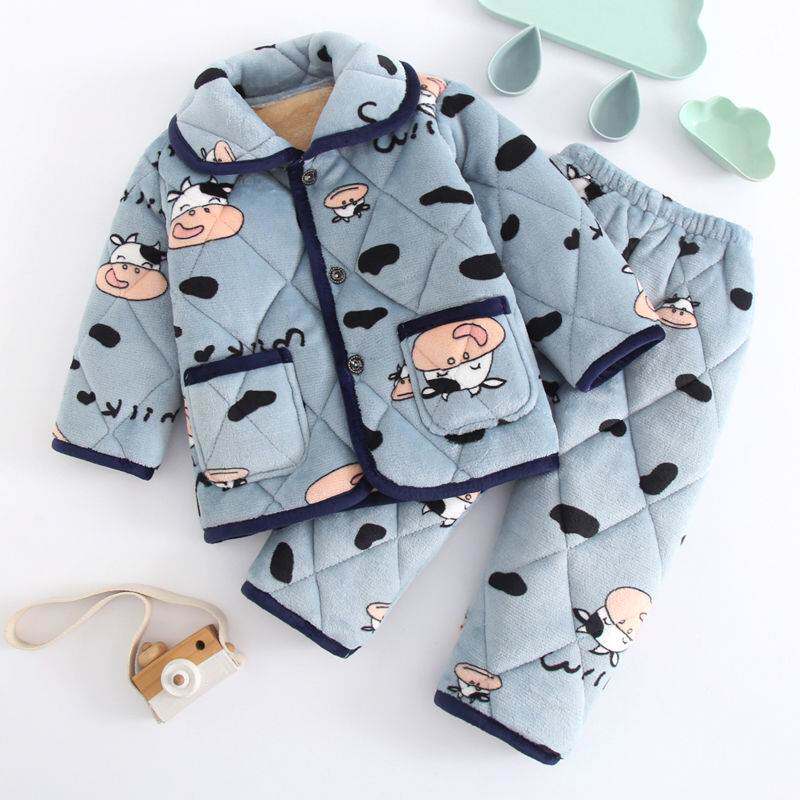 Детская утепленная пижама для мальчиков, стеганый фланелевый детский коралловый бархатный удерживающий тепло комплект