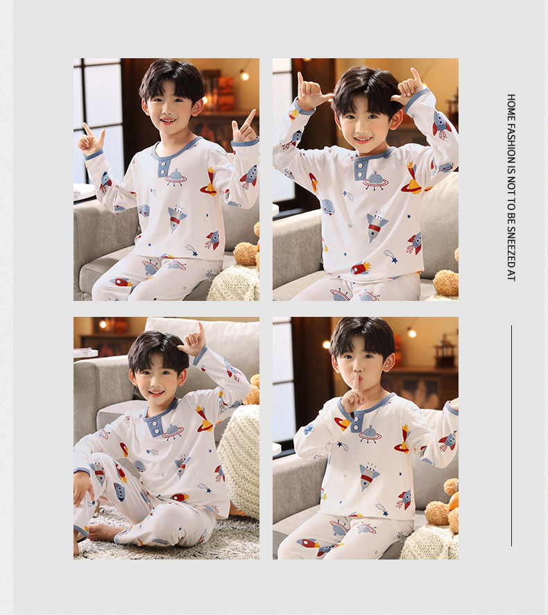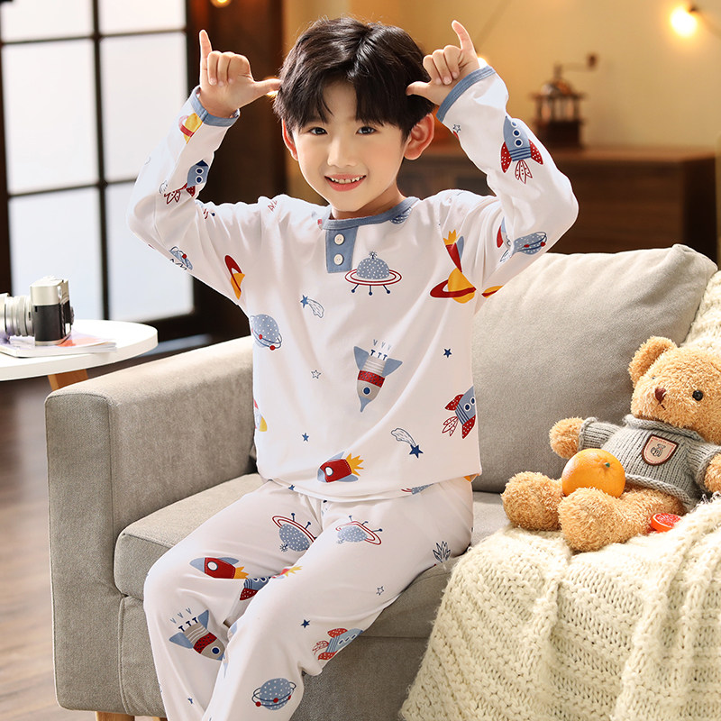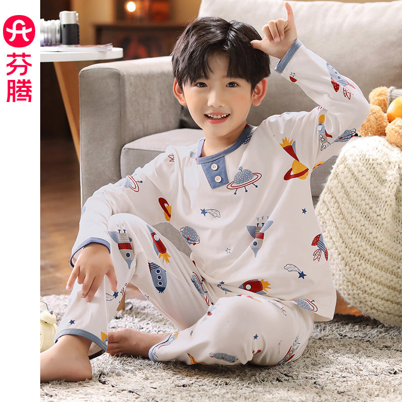 芬腾 Пижама для мальчиков, хлопковый детский лонгслив, мультяшный комплект, подходит для подростков
