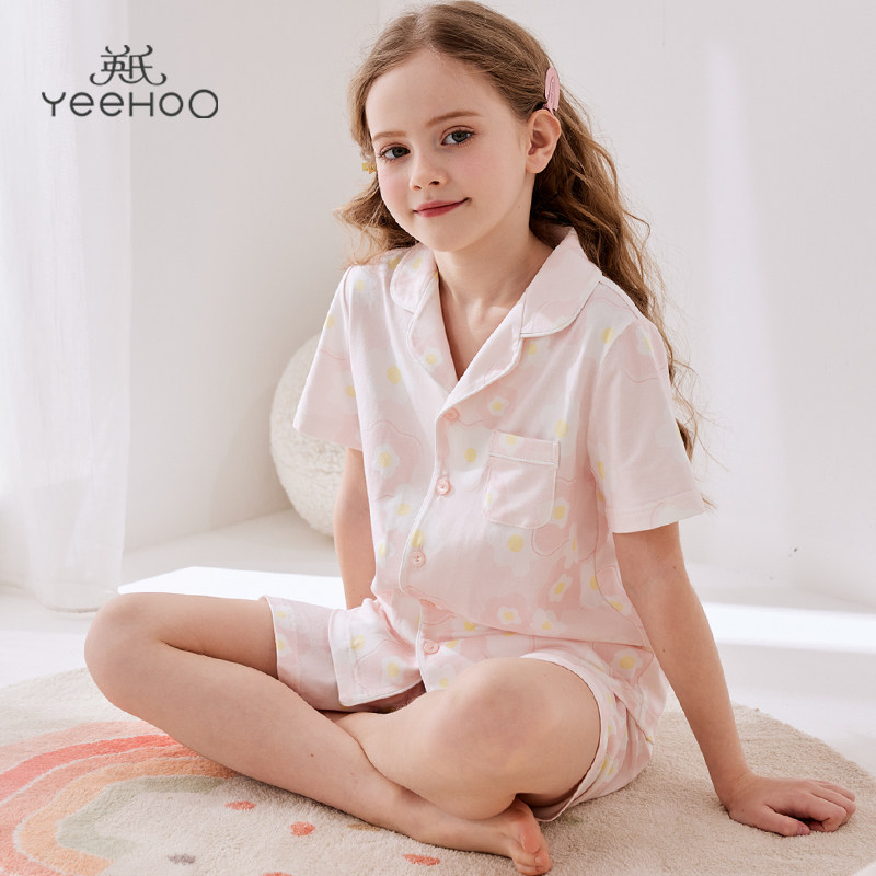Пижама, тонкий летний детский комплект, короткий рукав