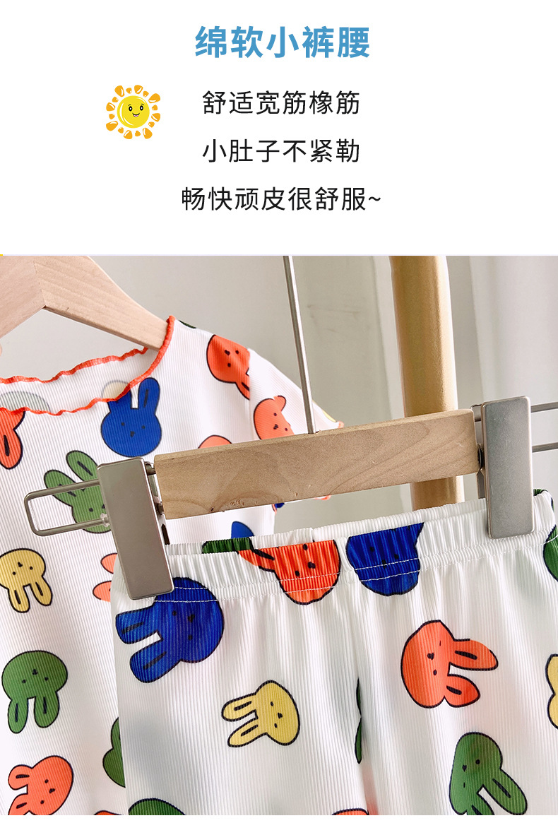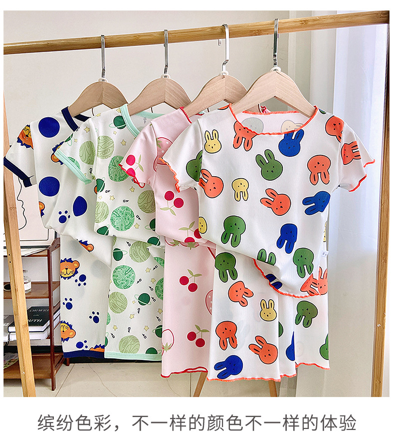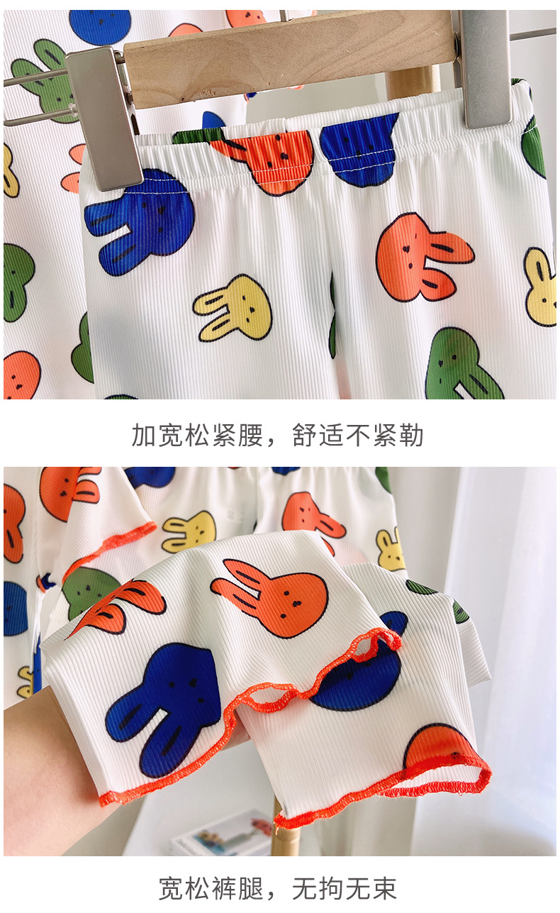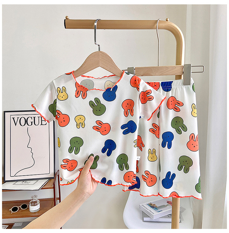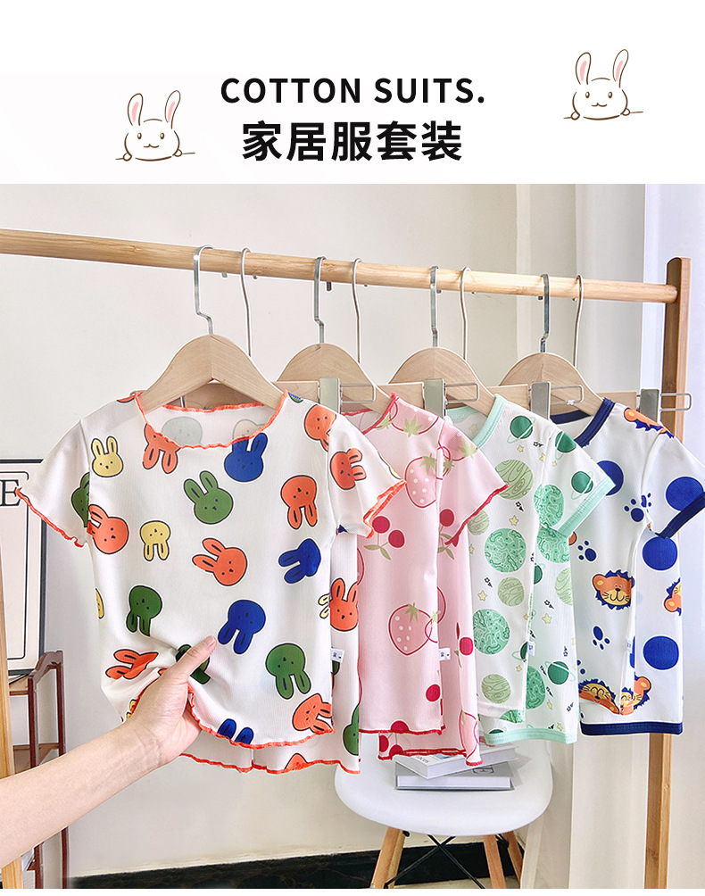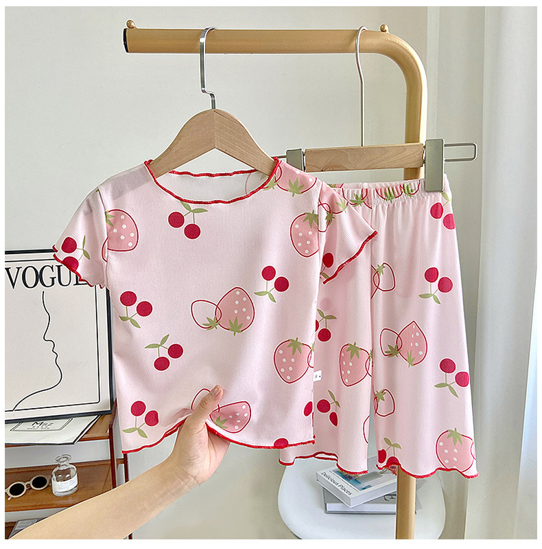 Детские шелковые летние нарукавники, комплект, милая пижама, кролик, клубника, тонкий костюм мальчика цветочника, короткий рукав
