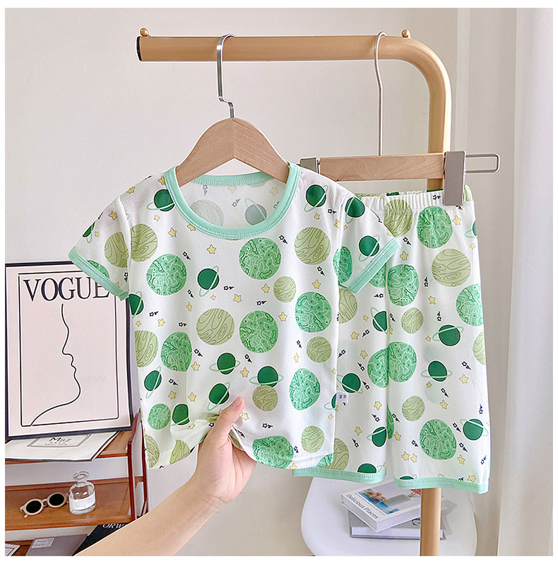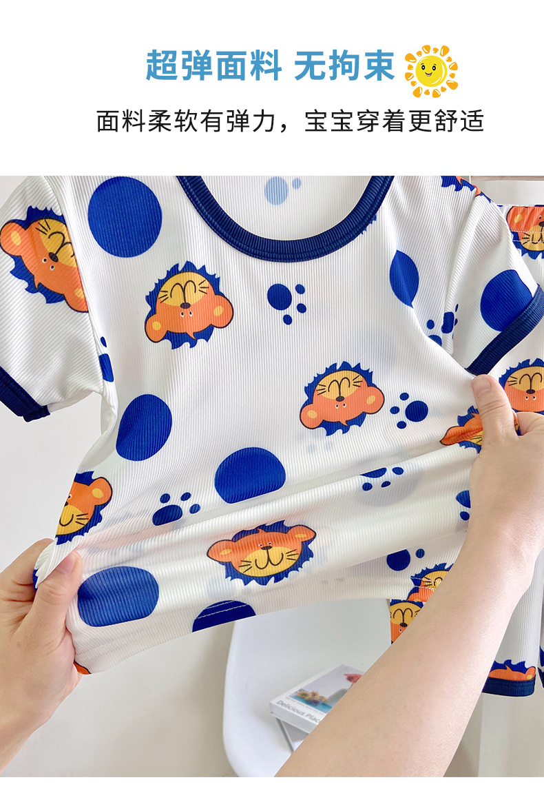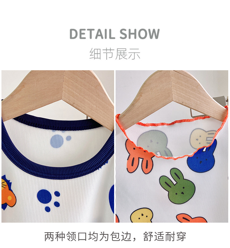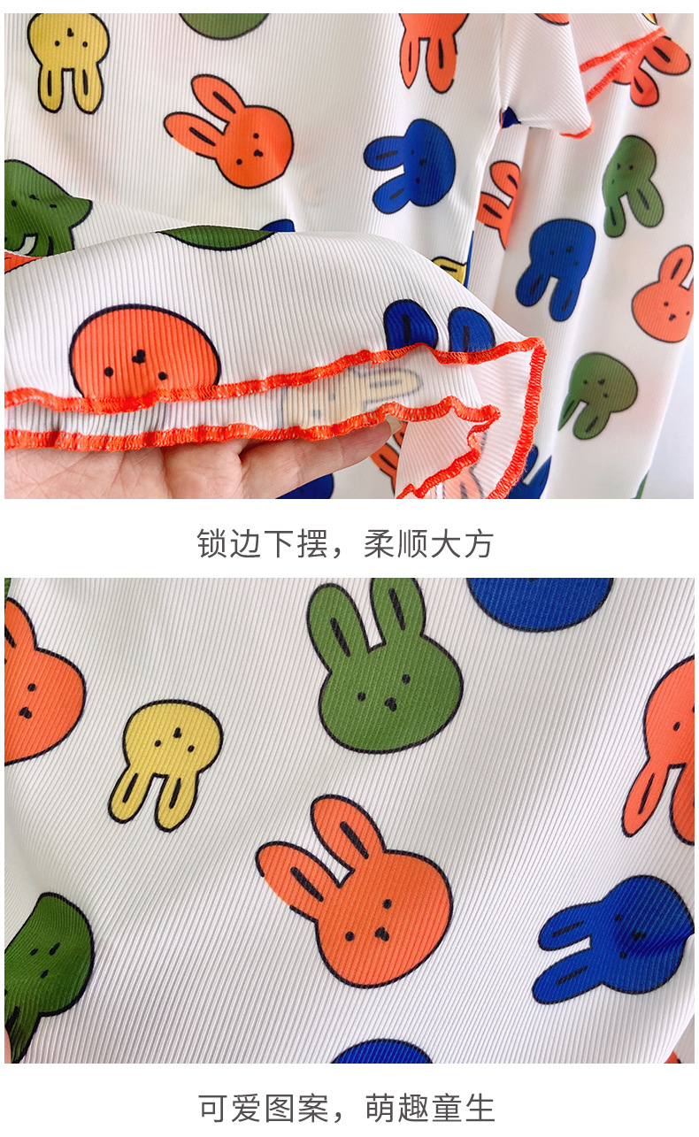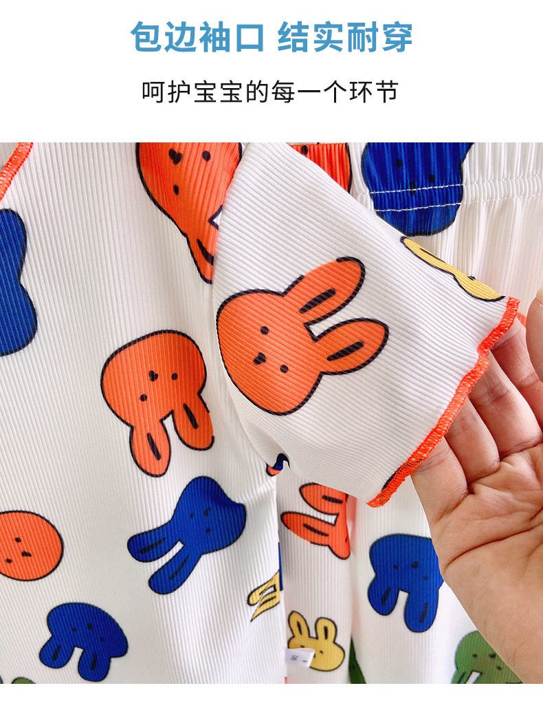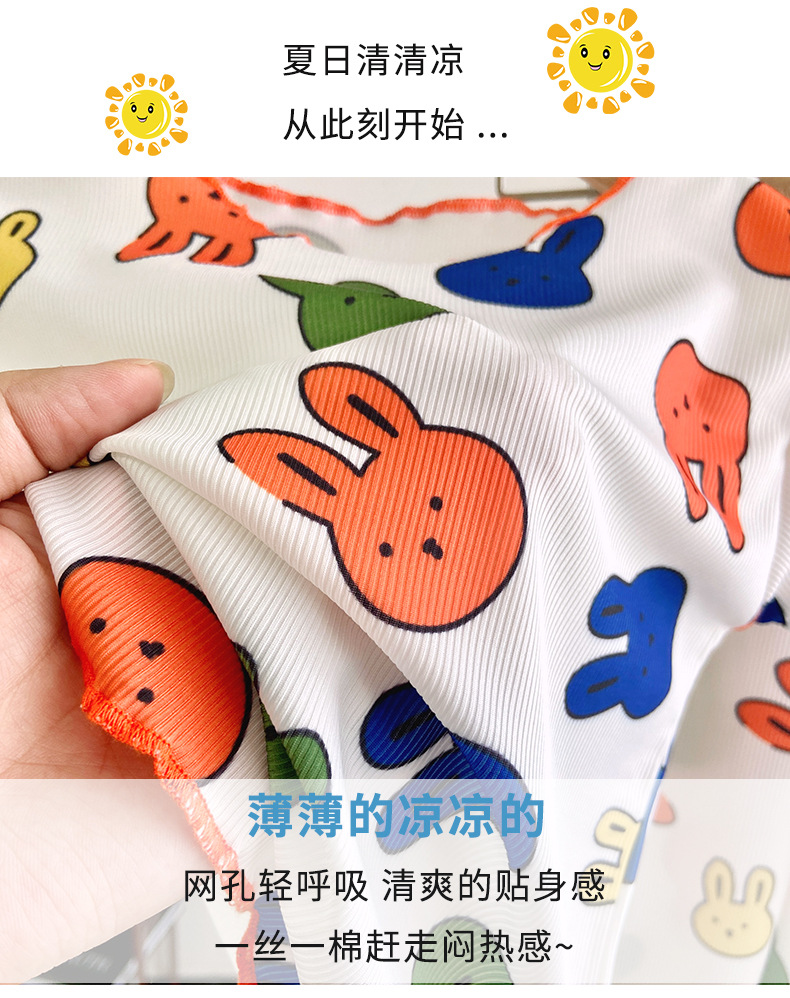 Детские шелковые летние нарукавники, комплект, милая пижама, кролик, клубника, тонкий костюм мальчика цветочника, короткий рукав