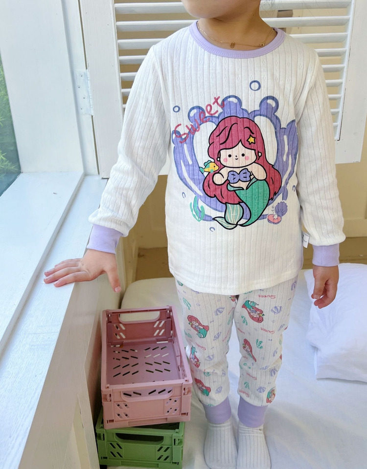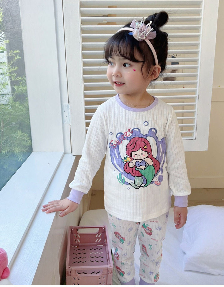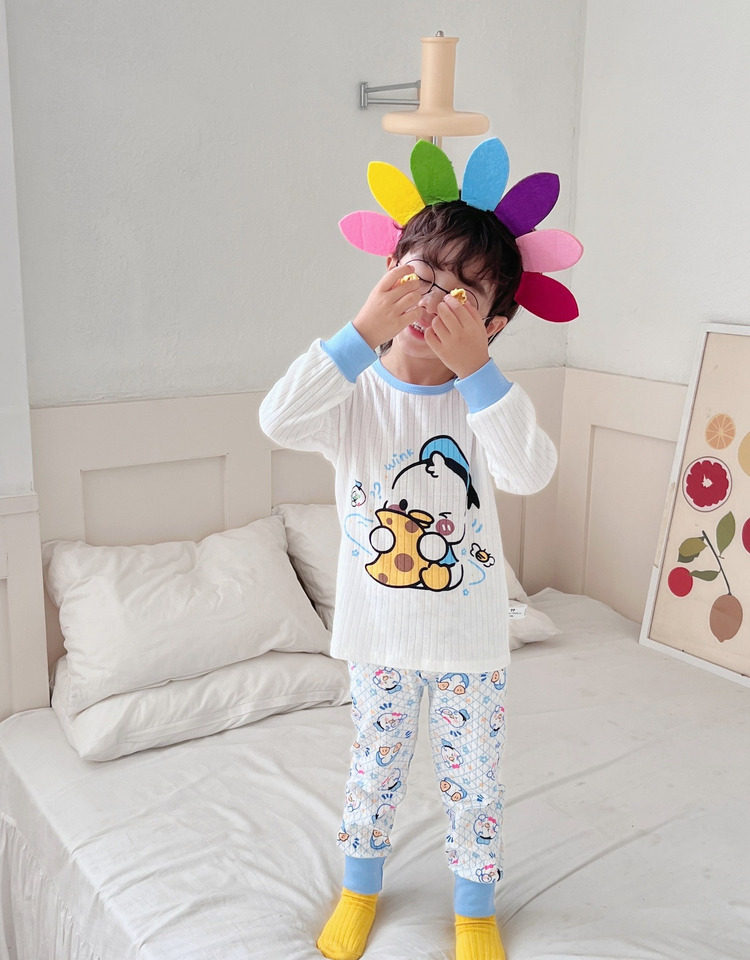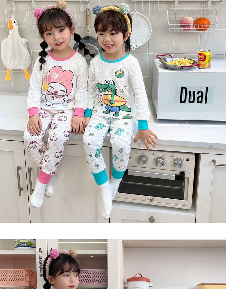 Детское хлопковое нижнее белье, детский комплект, термобелье подходит для мужчин и женщин, демисезонная дыхательная мультяшная пижама