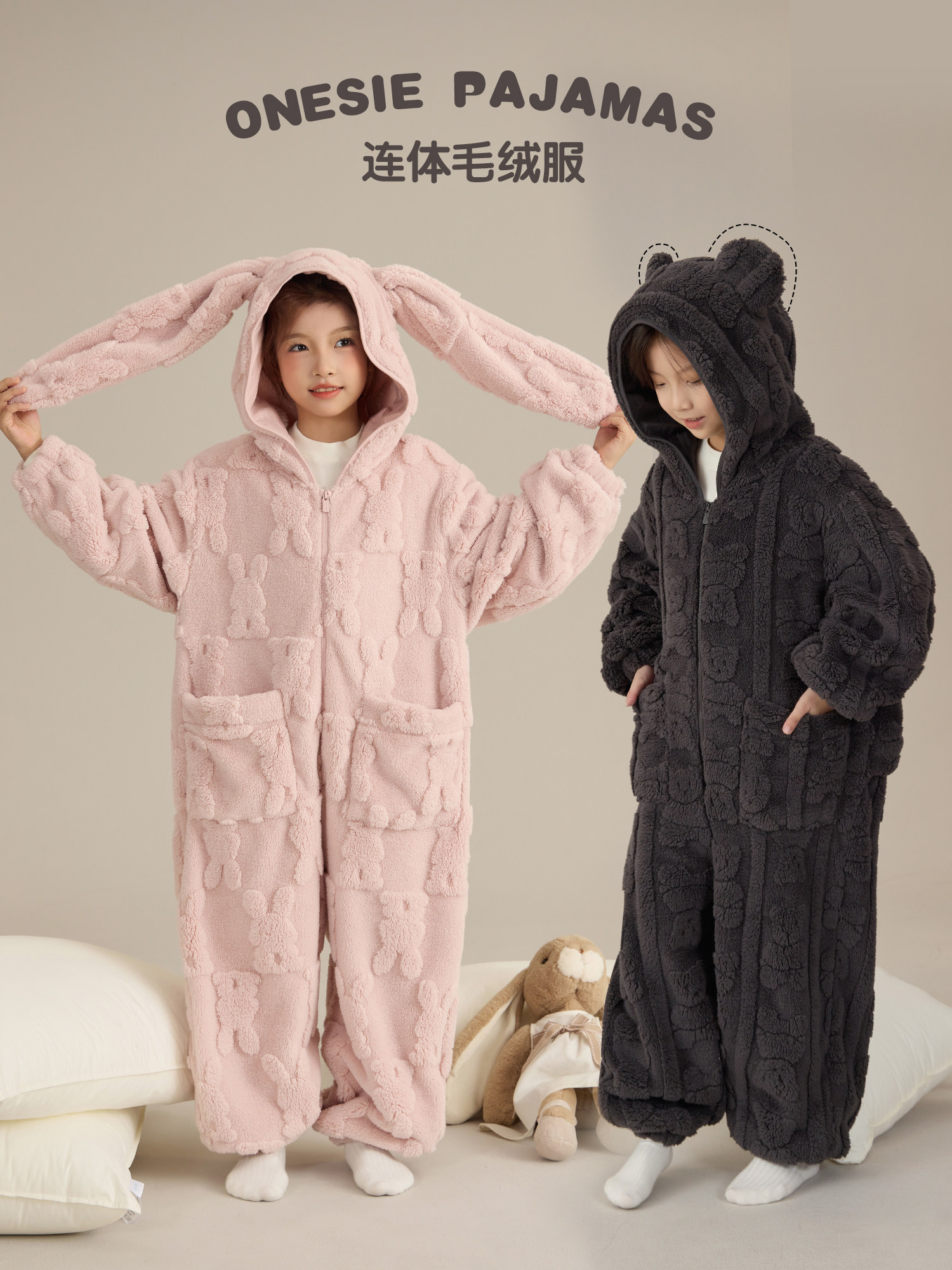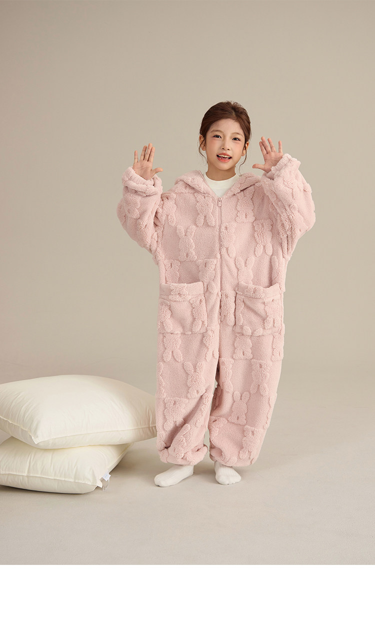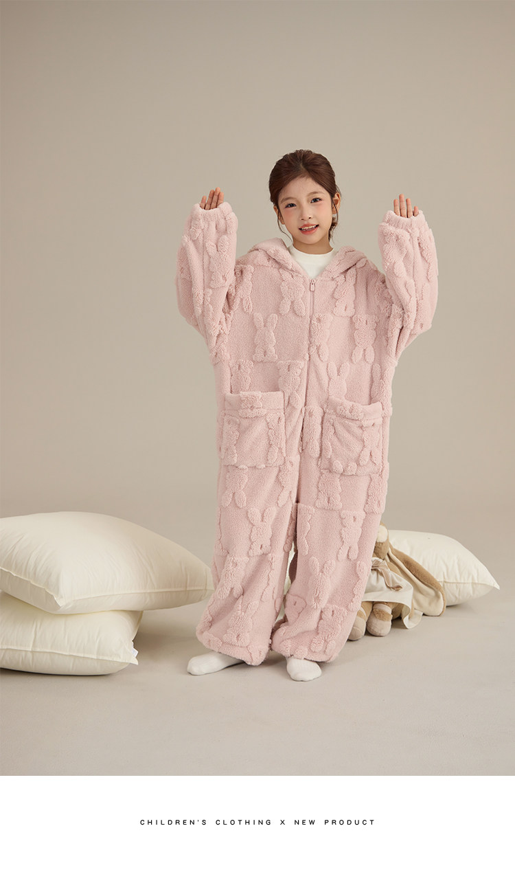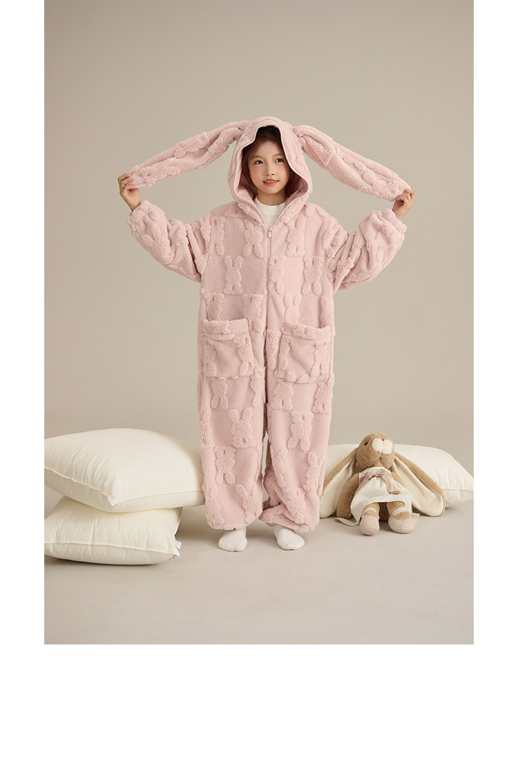 Детский плюшевый кролик, зимний удерживающий тепло комбинезон, пижама с капюшоном, семейный стиль