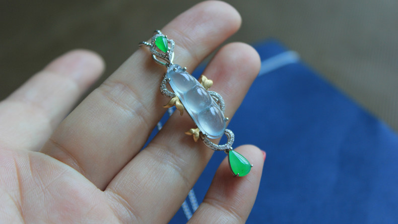 百花滟 Естественный грузовый вид льда Moxisha Emerald Bean Pod Подвеска Bzb00702 [исключая цепь]
