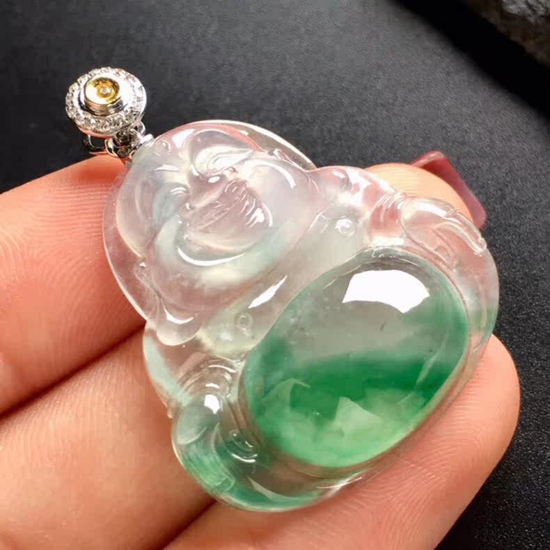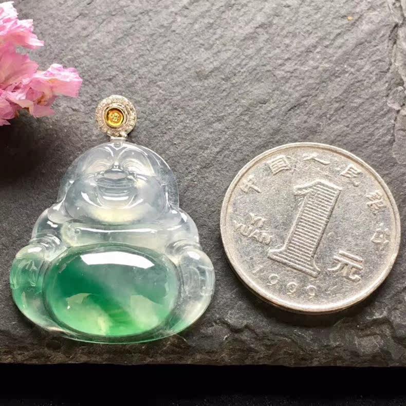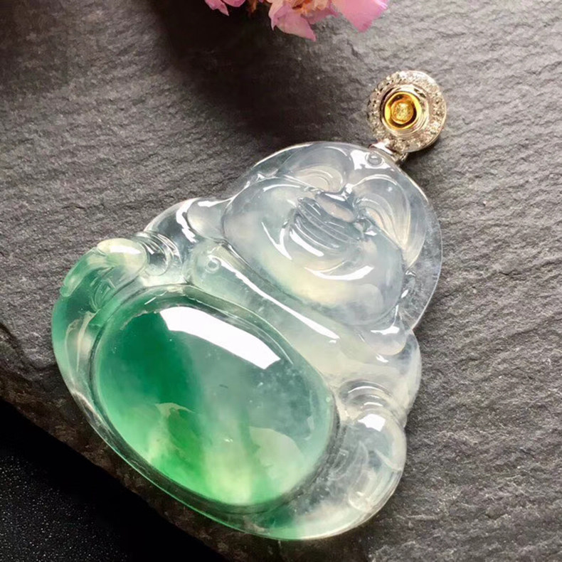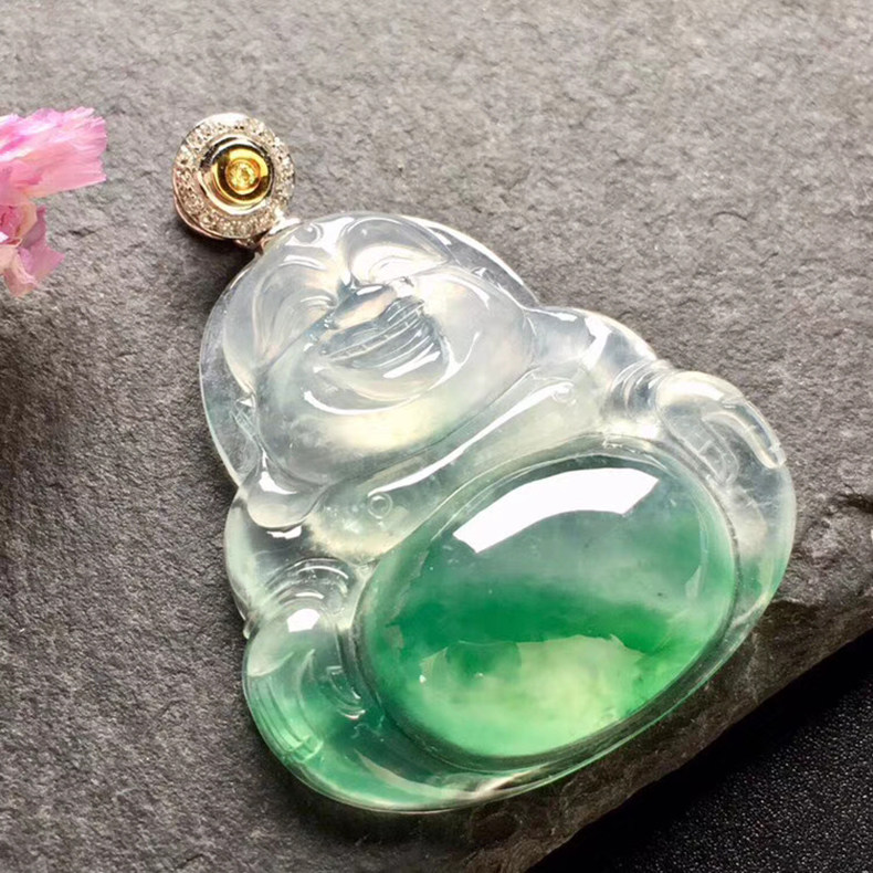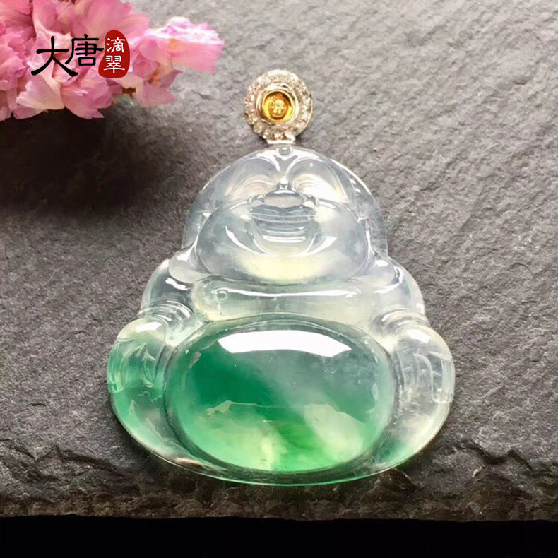 大唐滴翠 Инкрустация камня, подвеска, изумрудный прозрачный камень, золото 750 пробы, имитация льда