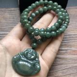 Комплект, натуральный нефрит из Мьянмы, Будда, подвеска, реплика, ожерелье, оберег на день рождения