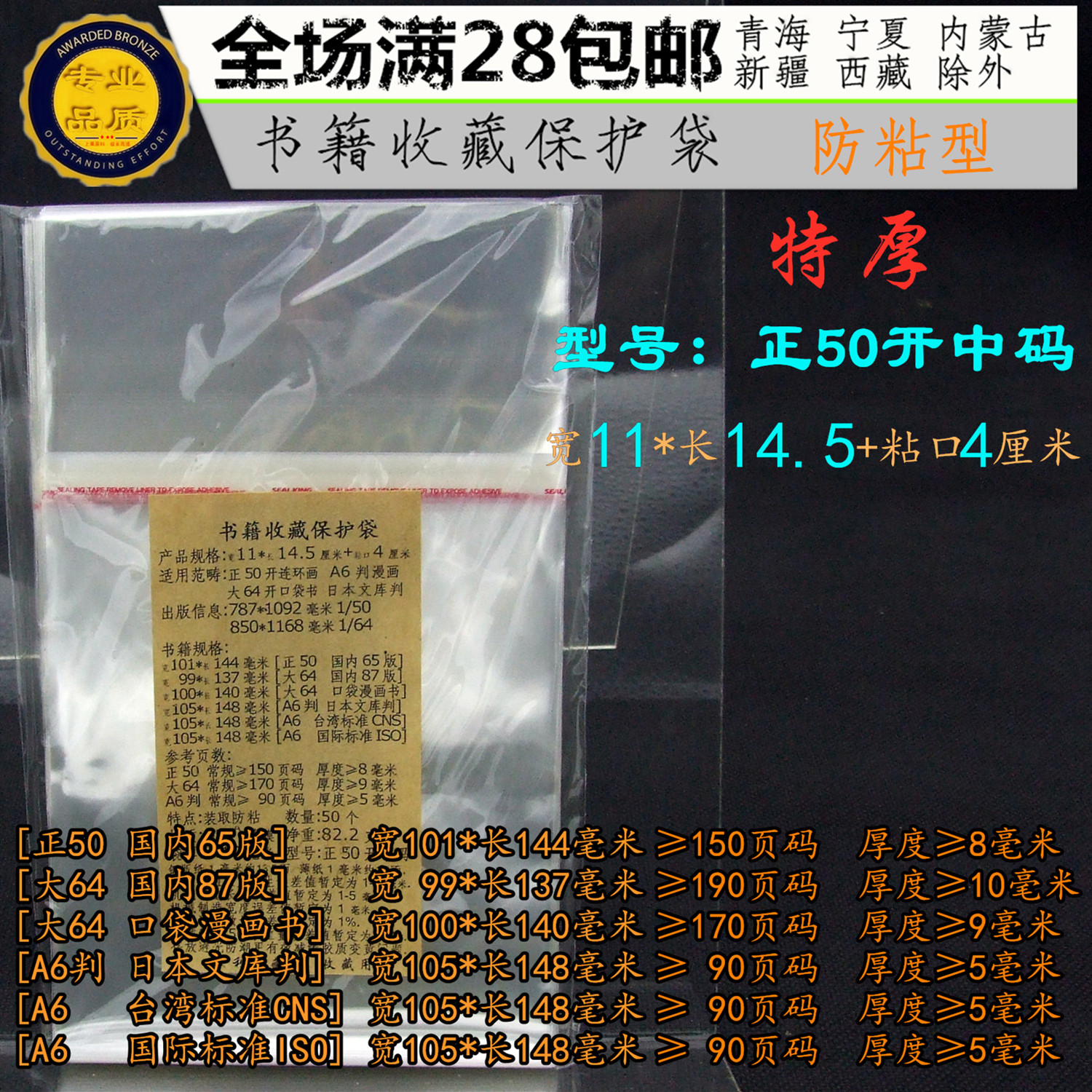 Экстраординарный 50 кайхонг код 11*15+5см*50 Комиксы Защитные сумки анти -набор комиксов