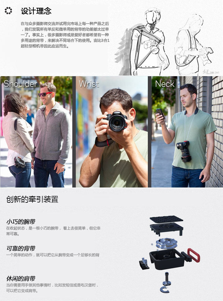Универсальная и лаконичная 3 -1 -1 -камерная полоса позволяет вам комфортно нести цифровую зеркальную камеру или камеру для микроэлементов, которую можно использовать в качестве браслета, плечевого ремня или висящего ремня шеи.