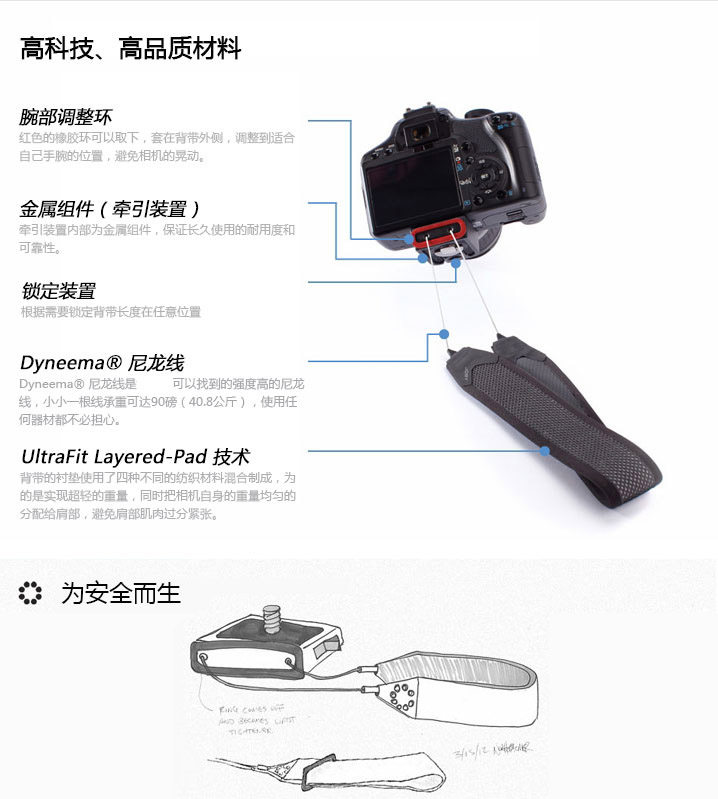 Плавный плечевой ремень: длина жесткой веревки расширила плечевой ремешок, новое поколение материала может нести линзу вниз, когда таблетка подвешивается на 40,8 кг таблетки камеры из нержавеющей стали, чтобы избежать столкновения.