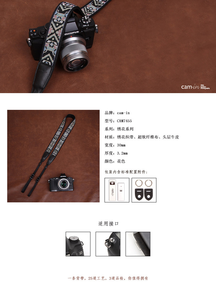 Ремешок для цифровой фотокамеры cam-in с вышивкой в этническом стиле, плечевой ремень для зеркальной фотокамеры CAM7455