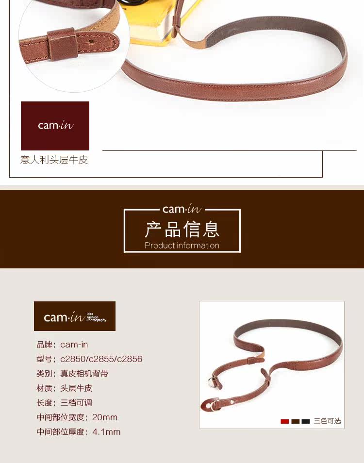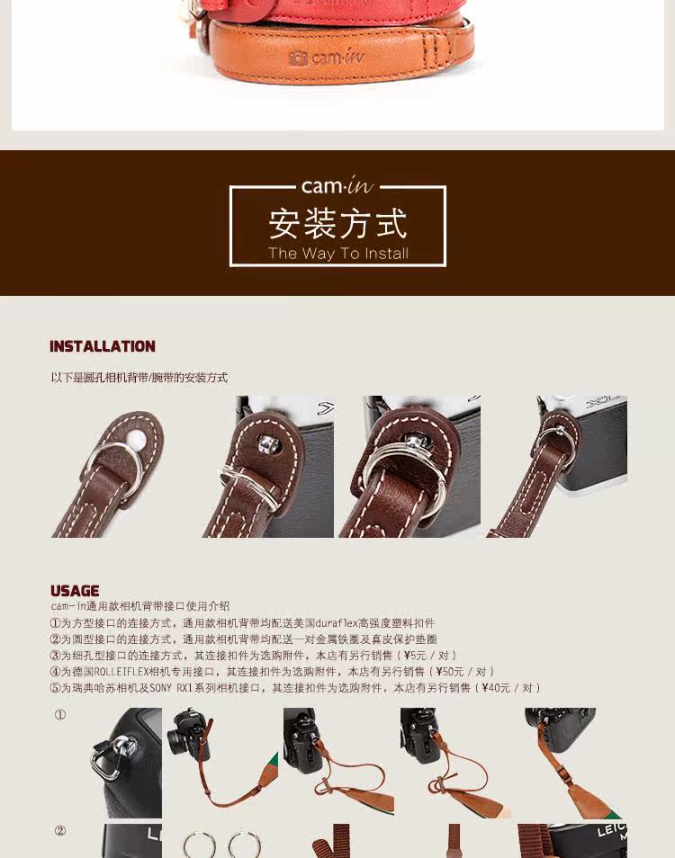 Сингл камера Cam-In SLR подходит для X-M A7 RX100 Черная карта Кожаная ремешок 20 мм шириной 285