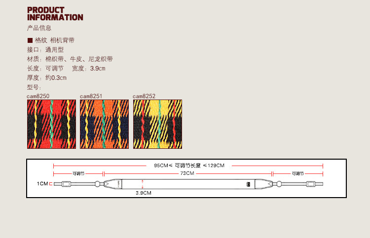 Универсальный клетчатый ремень cam-in из хлопка, удобный ретро-ремень для зеркальной цифровой камеры, плечевой ремень для беззеркальной фотографии CS017