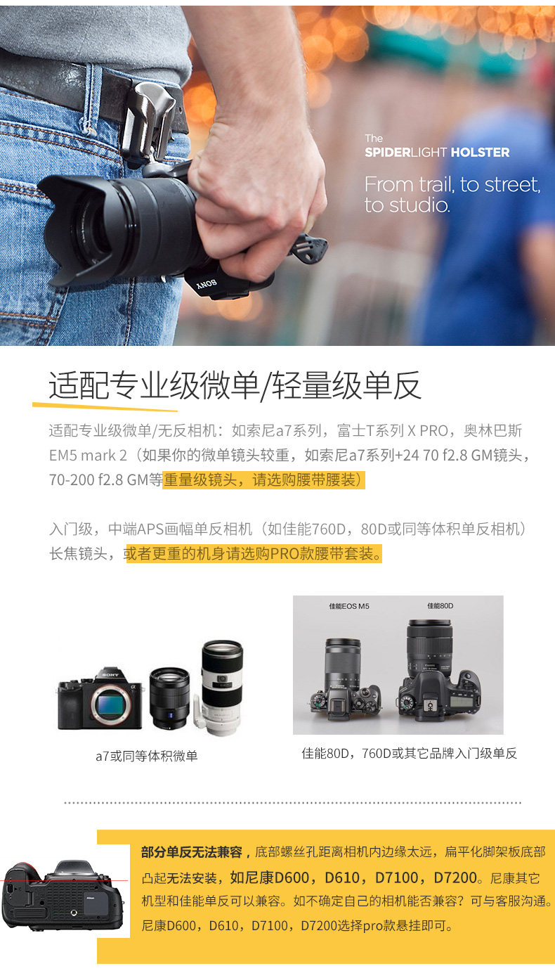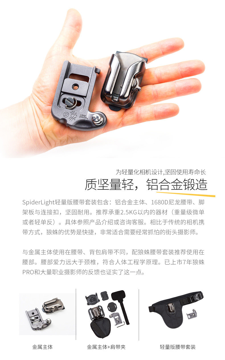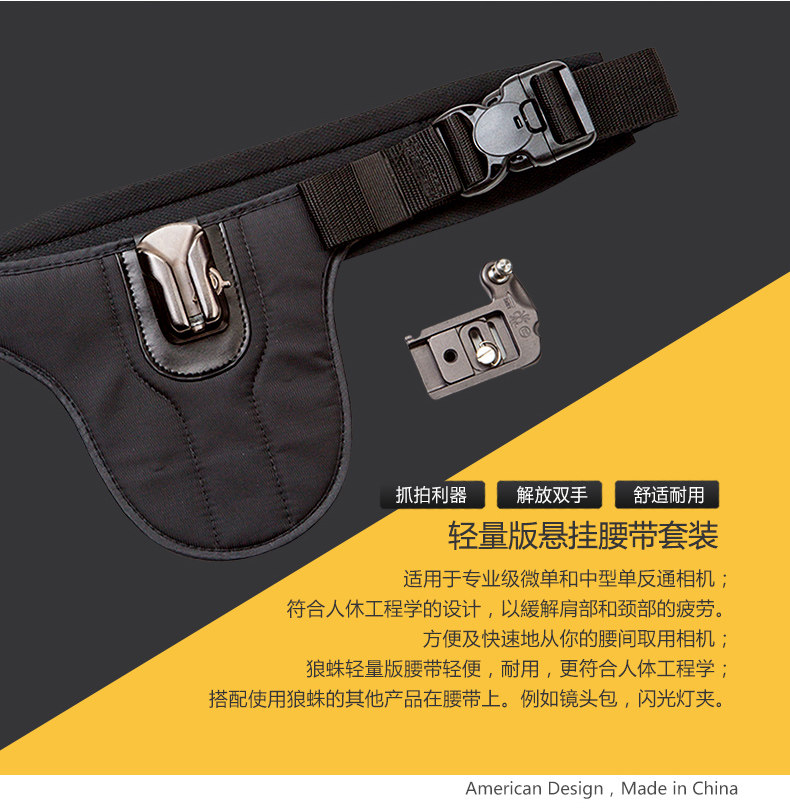 Легкий ремень легкий и долговечный, что соответствует эргономике.Может быть в сочетании с другими продуктами с Wolf Spider на поясе.Такой как сумка для линзы, FlashЛегкий клип.Сущность
