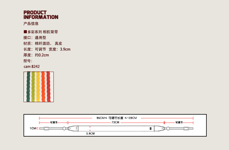 Cam-in Cotton Woven Series Профессиональная модная камера ремешок универсальный интерфейс cam8242