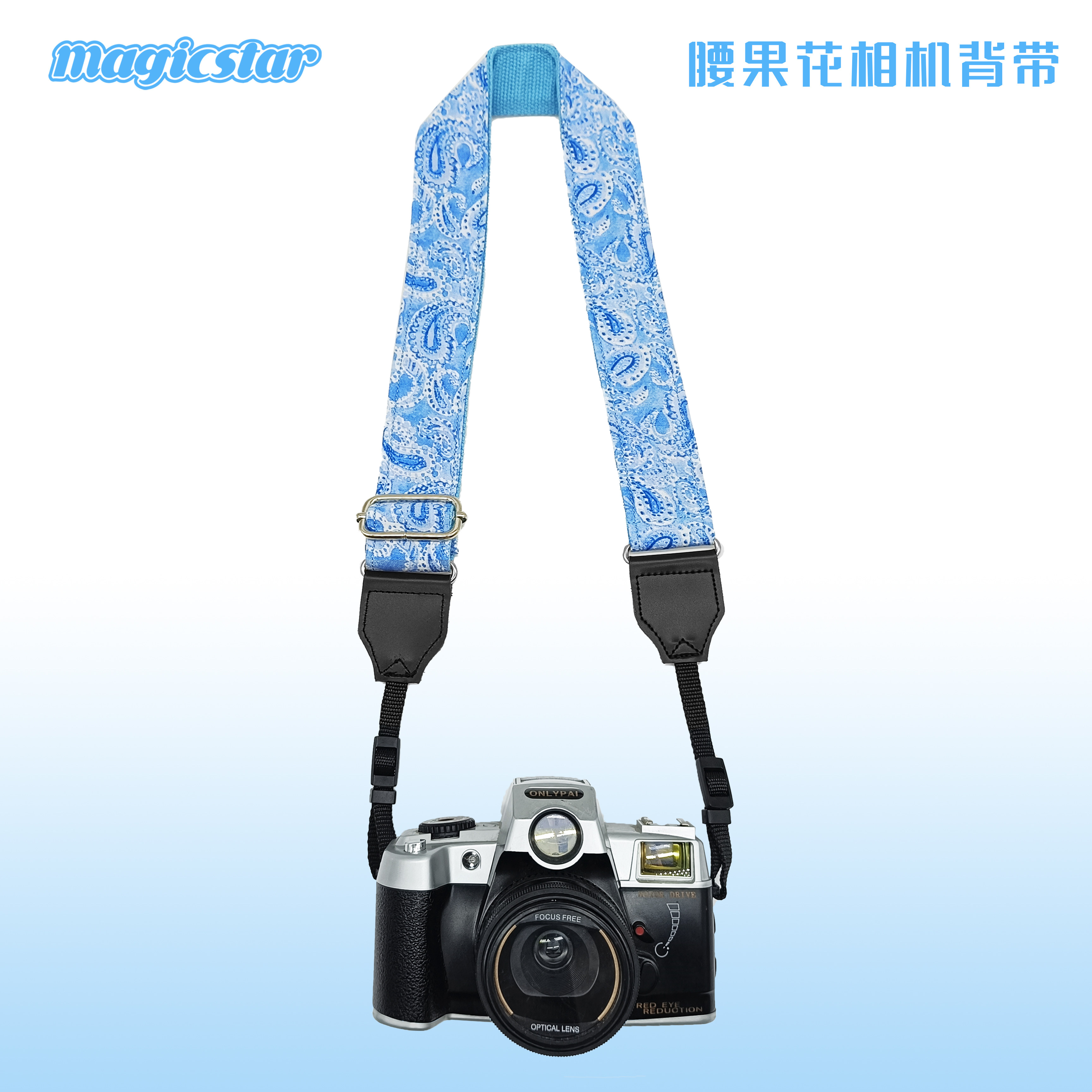 Polaroid, синяя камера, сумка через плечо, бретели, подтяжки, нескользящий ремешок, в цветочек