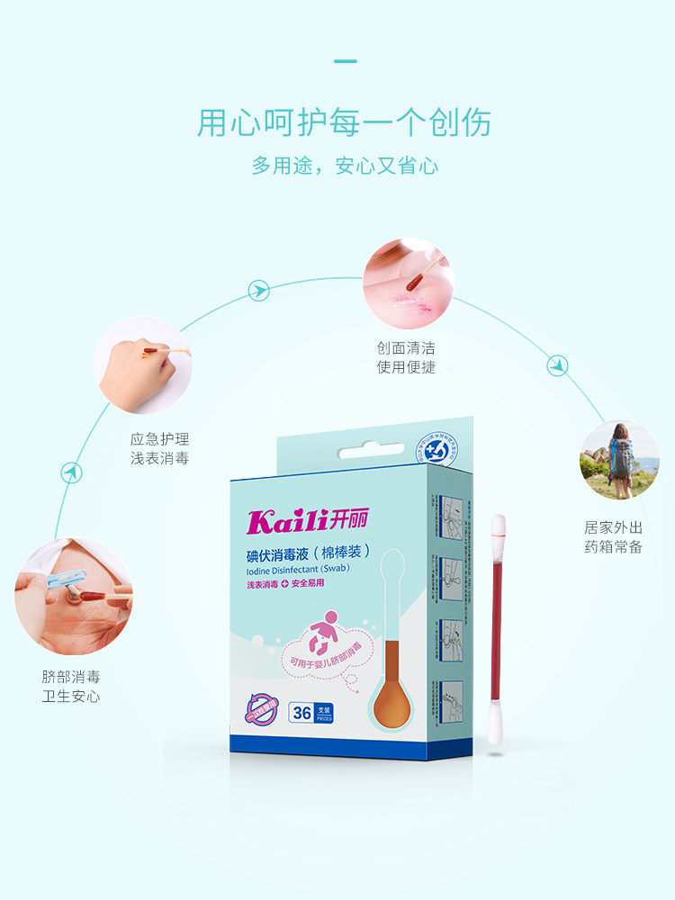 开丽 Детские ватные палочки для новорожденных, антибактериальное дезинфицирующее средство для пупка для хранения пуповины, 36