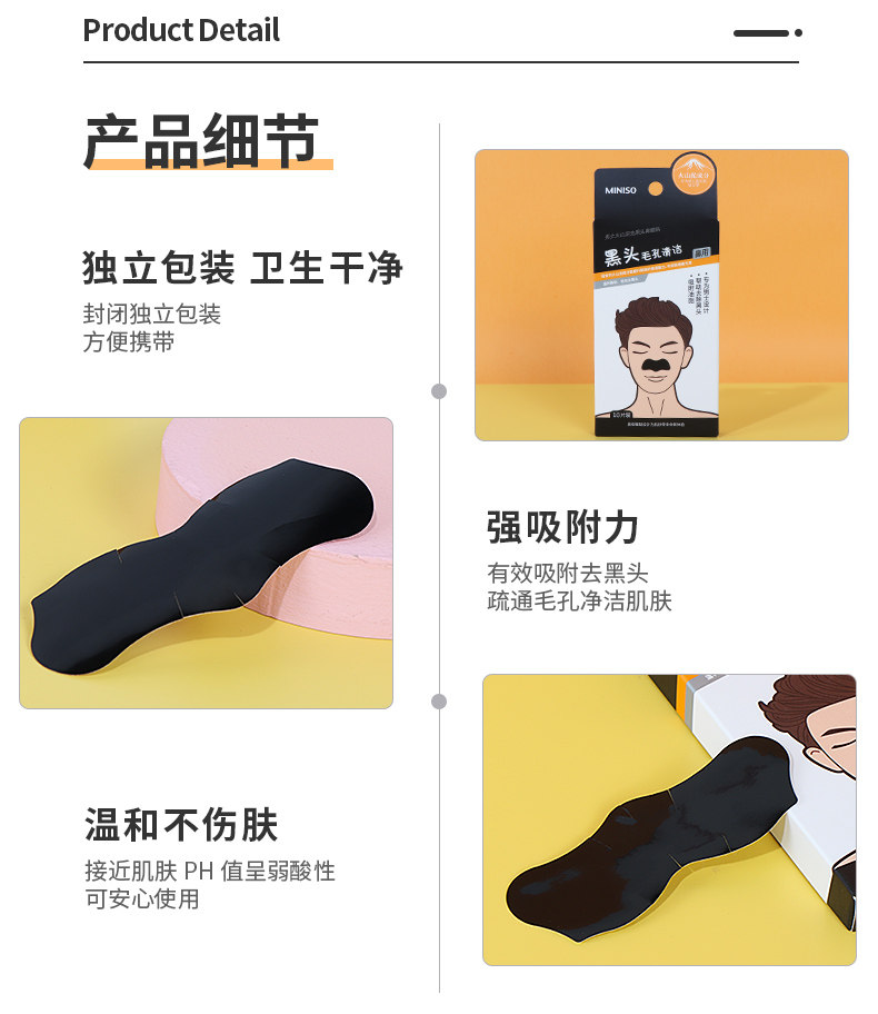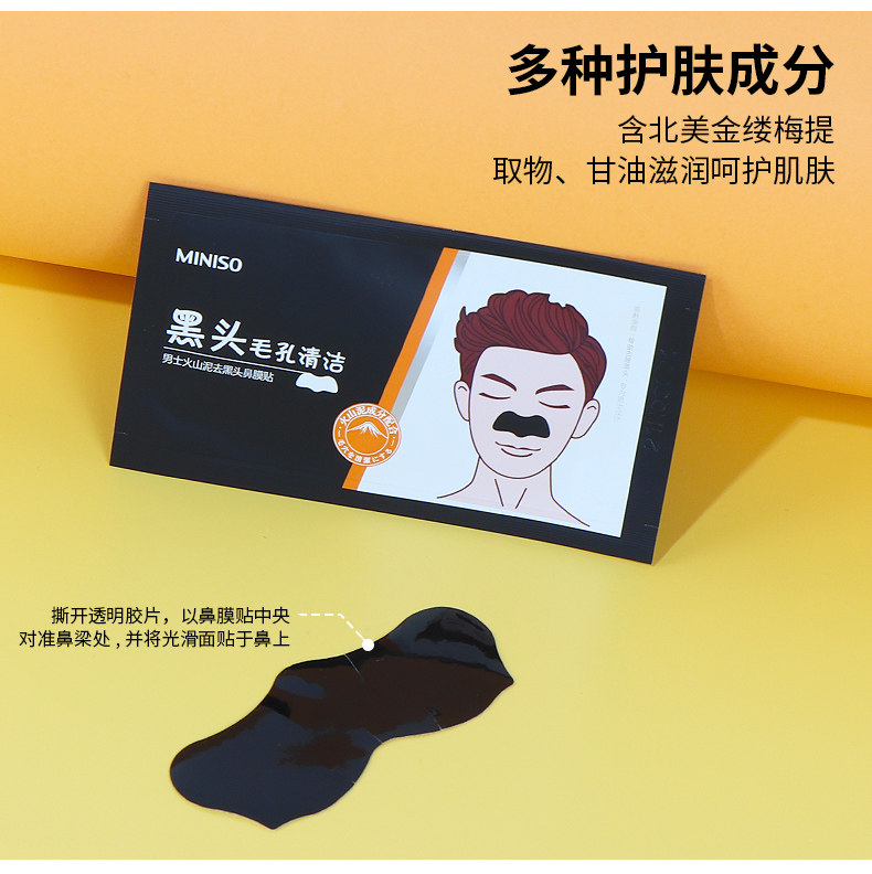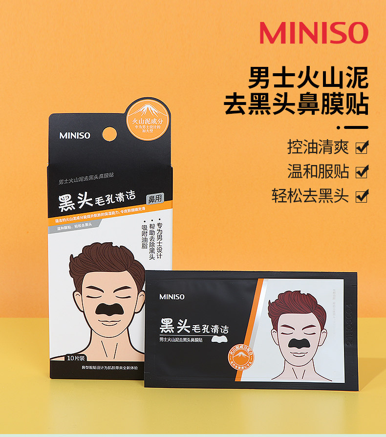 Miniso, деликатный носовой пластырь от черных точек, сужает поры, контроль жирного блеска
