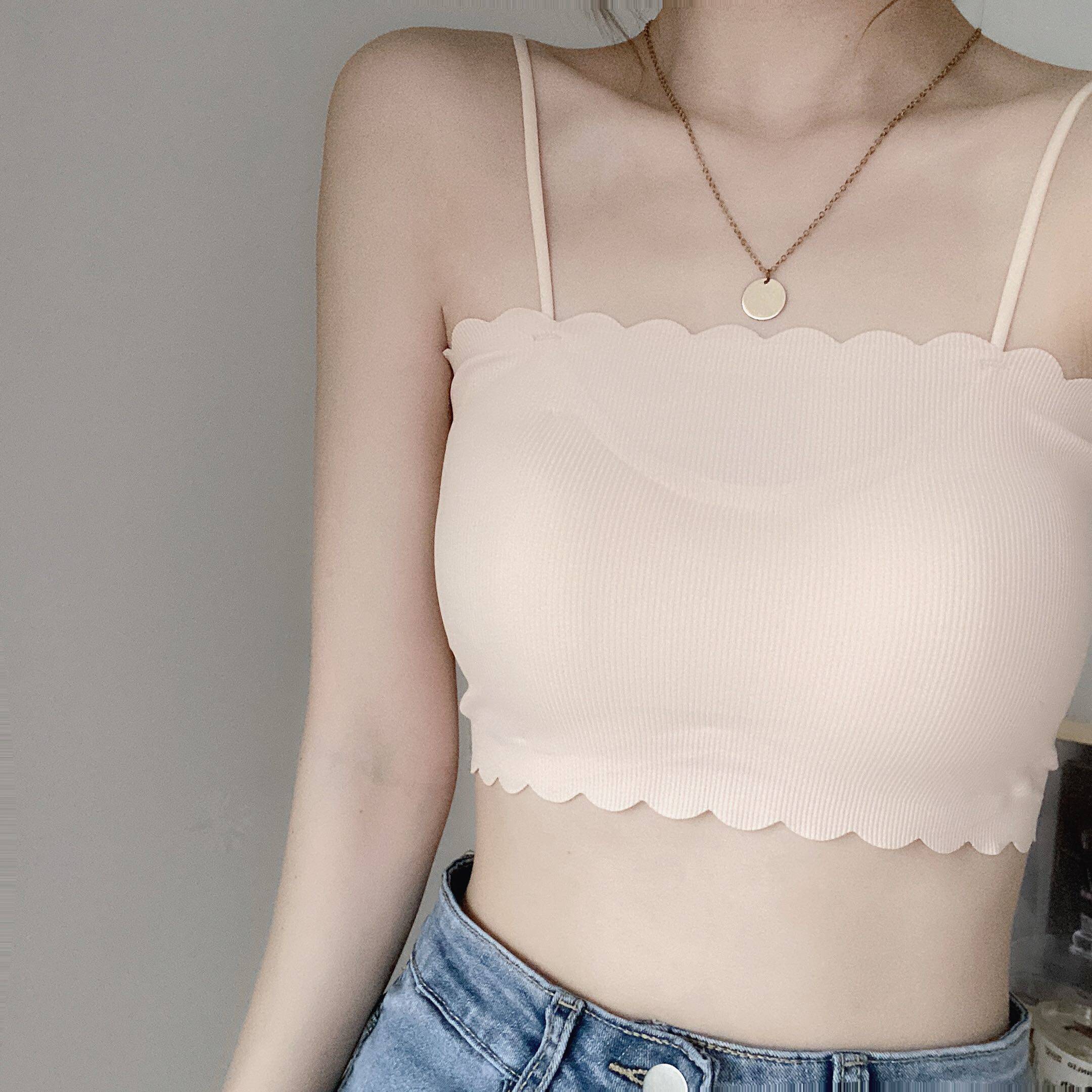 Шелковый бюстгальтер-топ, топ без лямок, защитное белье, нижнее белье для школьников, сексуальная базовая тонкая майка топ, в корейском стиле