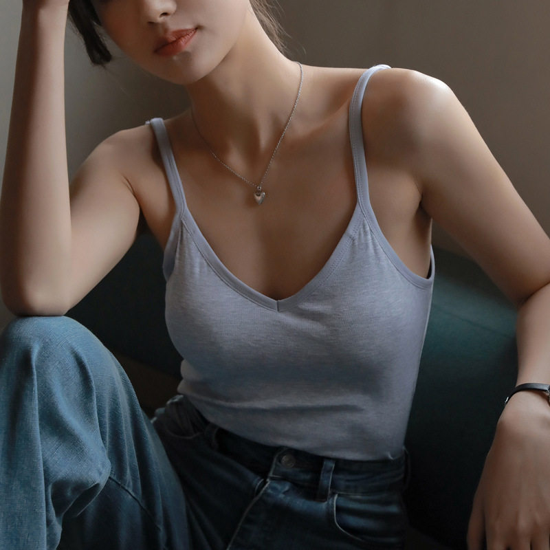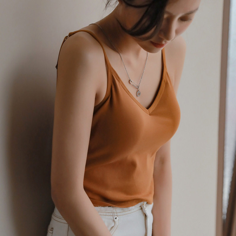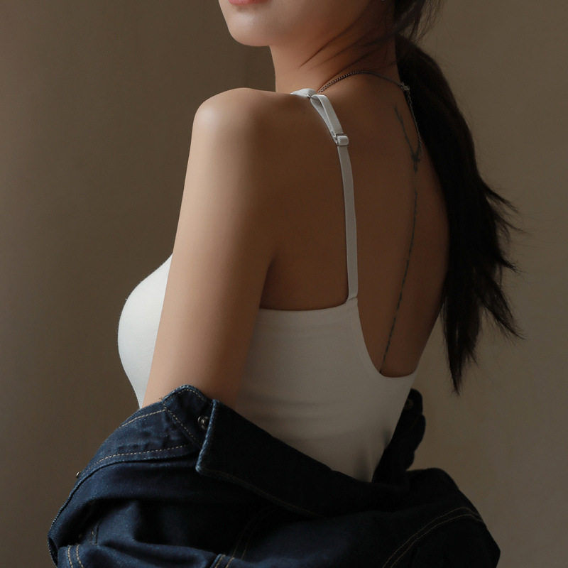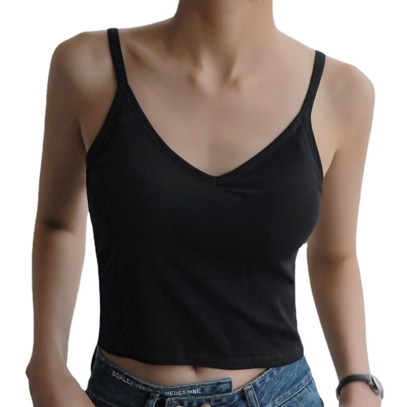 Базовая короткая майка, топ с чашечками, жилет, V-образный вырез, красивая спина, популярно в интернете