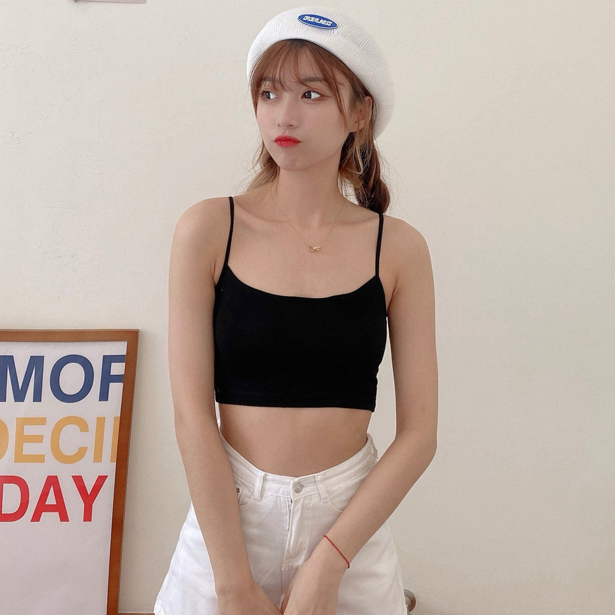 Майка топ, тонкий бюстгальтер-топ, базовое защитное белье, нижнее белье, красивая спина, с лямками
