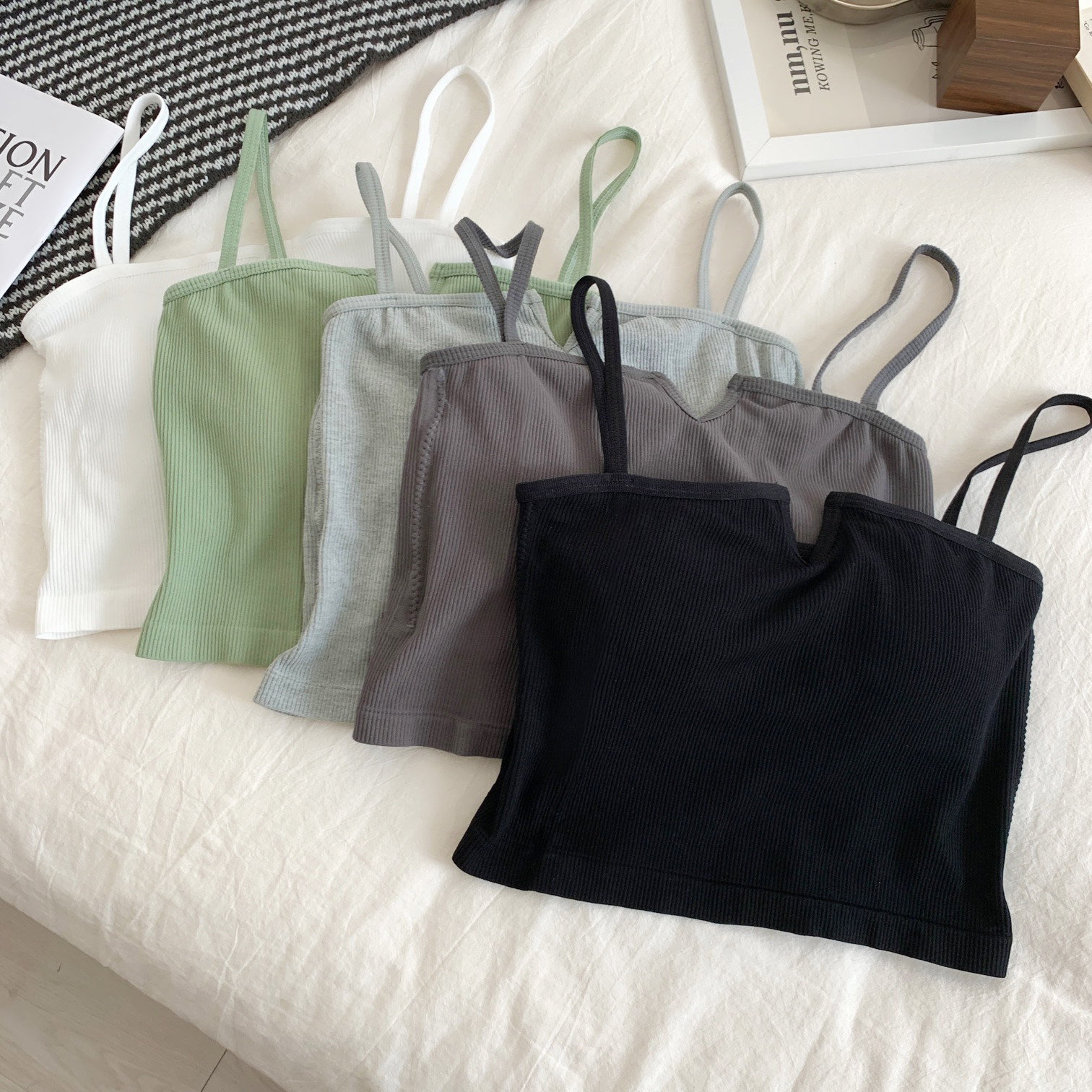 Летняя майка топ, белье для повседневной носки, короткий приталенный топ с чашечками, базовый топ без лямок, бюстгальтер-топ, эффект подтяжки, красивая спина