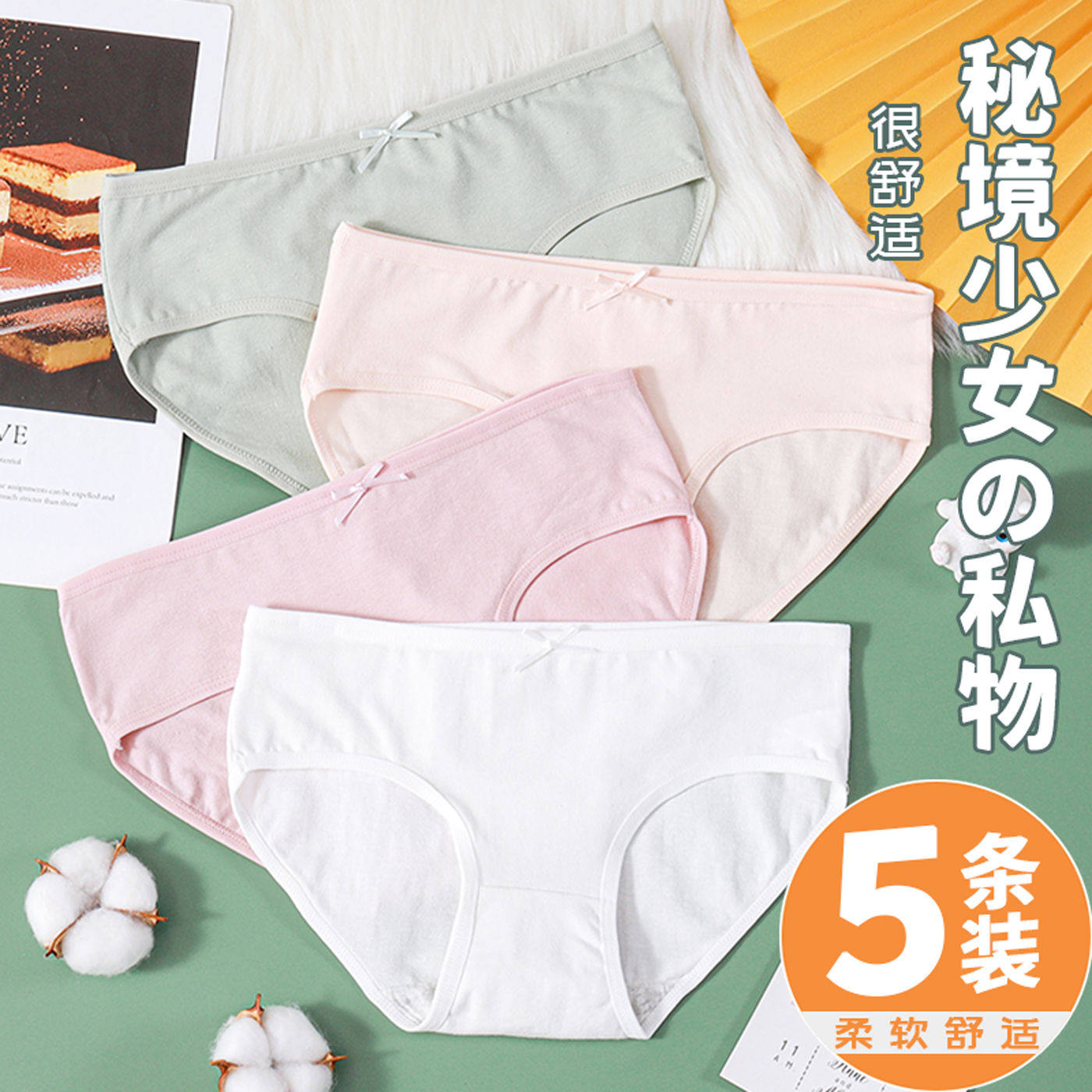 Нижнее белье, хлопковые антибактериальные штаны, дышащие трусы для школьников, средняя посадка